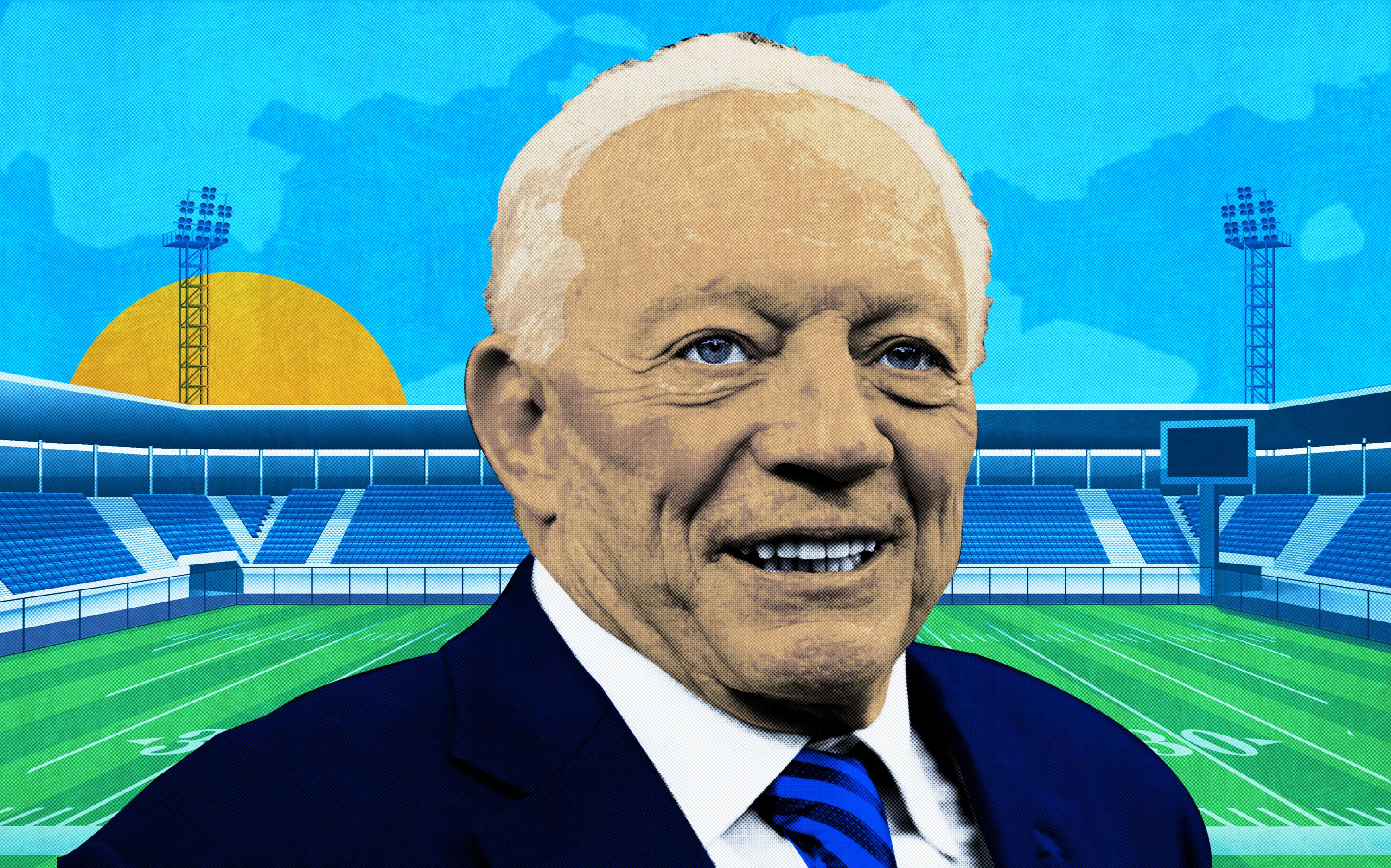 Some amount of Jones’s media love is an outgrowth of his knack for salesmanship. In 2008, Sam Farmer sat in the passenger seat of a Lincoln Town Car while Jones drove him around the site of what would become AT&T Stadium. Jones took his eyes off the road so he could tell Farmer of the virtues of his new pleasure dome. The car veered off course, and Jones had to slam on the brakes before the car broke through a barricade and hurtled into a ditch.
