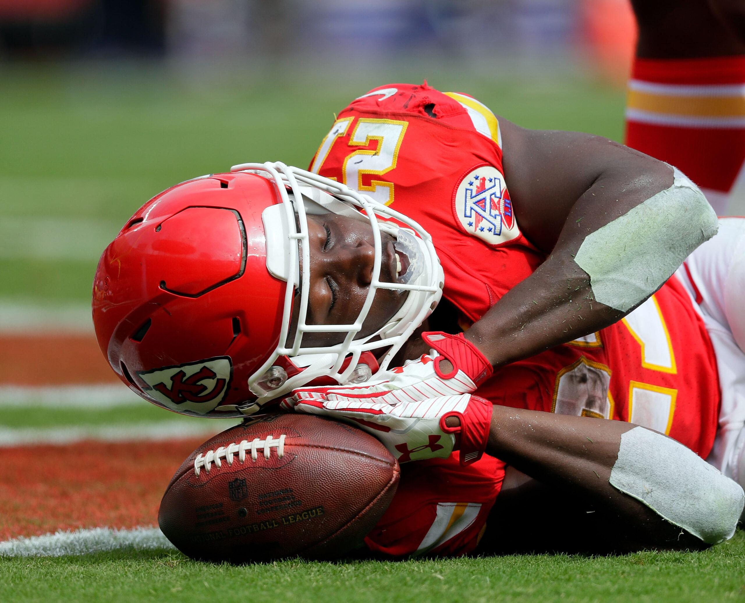 An even better celebration, though, was the one that Kareem Hunt, who’s taken all of two weeks to become one of the most exciting players in football, did during the Chiefs-Eagles game. After scoring his second touchdown in the game, Hunt got up from the muck of bodies he’d pulverized, then set the ball on the turf as he kneeled next to it and then used it like a pillow as he pretended to take a nap. This is a video of him doing so, and I don’t mind telling you that it makes me super happy every time I look at it, which has been a lot, because it’s fantastic: