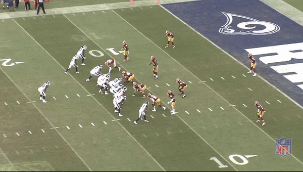If Goff identifies the opposing defense’s coverage—either before the snap or early in the down—he can take advantage of quick, ready-made throws that are part of the fabric of McVay’s approach. But sometimes Goff still looks like a quarterback with nine games of NFL starting experience. By misreading a defense or not fully trusting the system, he can sabotage plays that should otherwise stand a chance. His crushing late-game pick in a 27-20 loss to Washington in Week 2 represented the worst-case scenario, but there are subtler examples of Goff struggling to acclimate, too. When he fails to use proper footwork to time his release of the ball, plays around him can start to collapse.