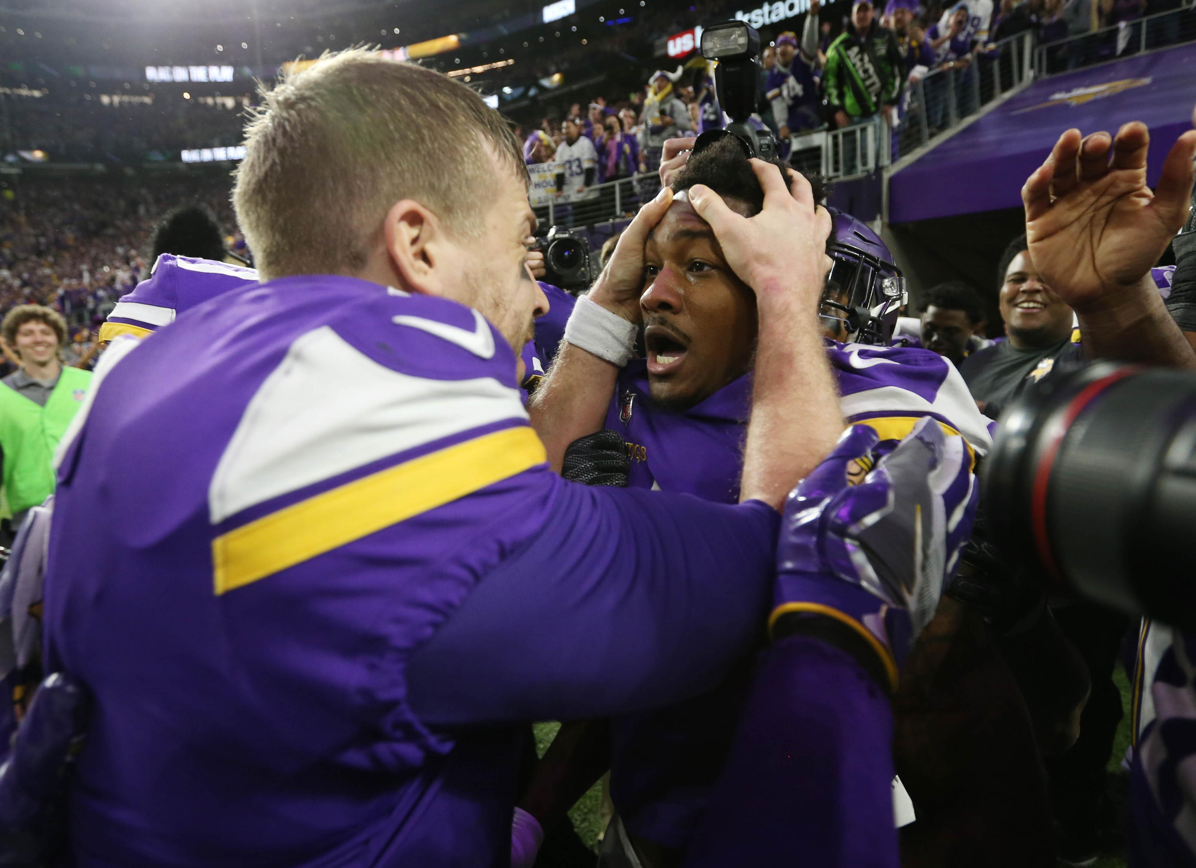 Case Keenum desperately needed to put the team in field goal position with a pass to the sidelines. He hit Stefon Diggs at the 35-yard line as Saints safety Marcus Williams whiffed trying to take out his legs. Diggs nearly fell down, but then put a hand out to stop himself and galloped the final 30 yards for the buzzer-beating touchdown and the 29-24 victory.