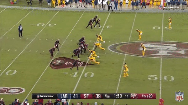 In a sense, Donald’s unpredictability on the field can make him a coaching challenge. “You wouldn’t let anyone else do that,” Johnson says of Donald’s freelancing tendencies. He points to a game-sealing sack from the Rams’ 41-39 win against the 49ers in Week 3, one of those classic plays that involved Donald hopping from one gap into the other, as evidence. At the snap, Donald goes after right guard Brandon Fusco’s outside edge with a quick club-and-rip move. The moment that Fusco leans to his right to slow him, though, Donald swings his left arm over the guard’s hands, bursts inside, and drags quarterback Brian Hoyer down in the backfield.