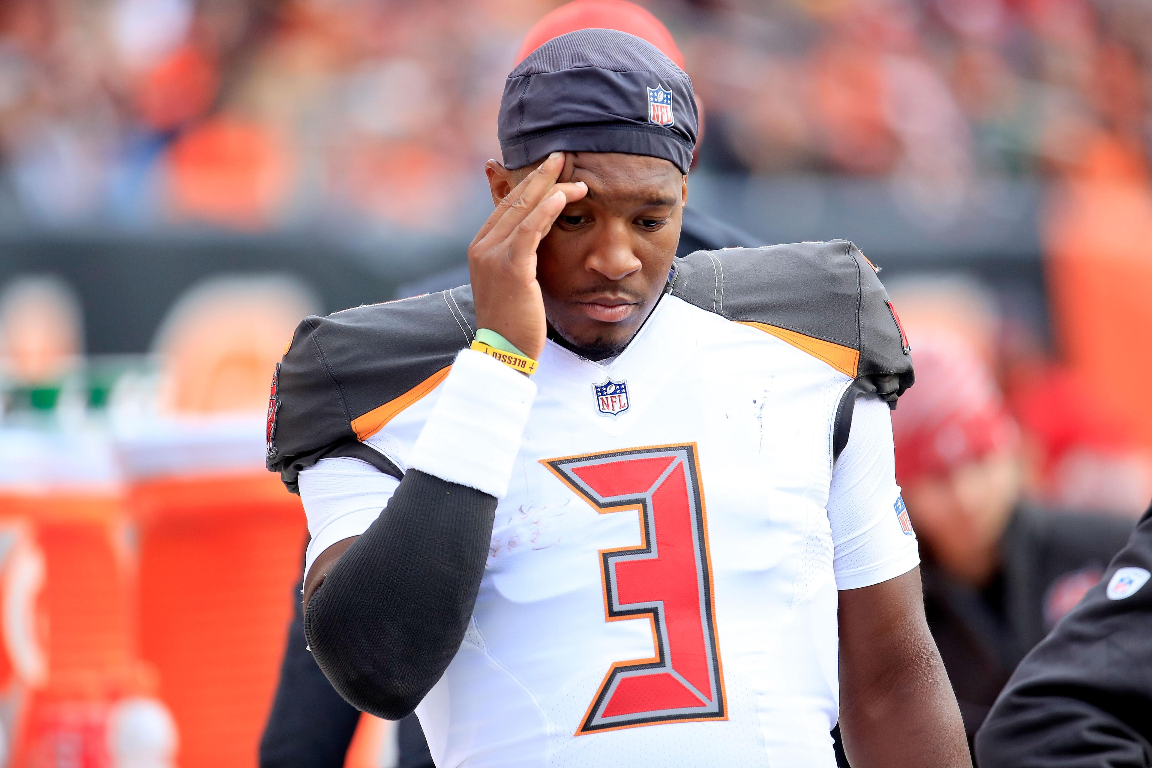 Winston was suspended for the first three games of this season for violating the league’s personal-conduct policy after an Uber driver said Winston grabbed her crotch and an offseason league investigation found her story credible. Despite missing those games, Winston has 10 interceptions this season, tied for the league lead through the end of Sunday’s early games. Even in Winston’s only victory in his four regular-season games, the team won despite him: In last week’s overtime battle with the Browns, Winston took sacks of 7 and 12 yards on the Bucs’ final drive before Chandler Catanzaro’s 59-yard game-winning kick.