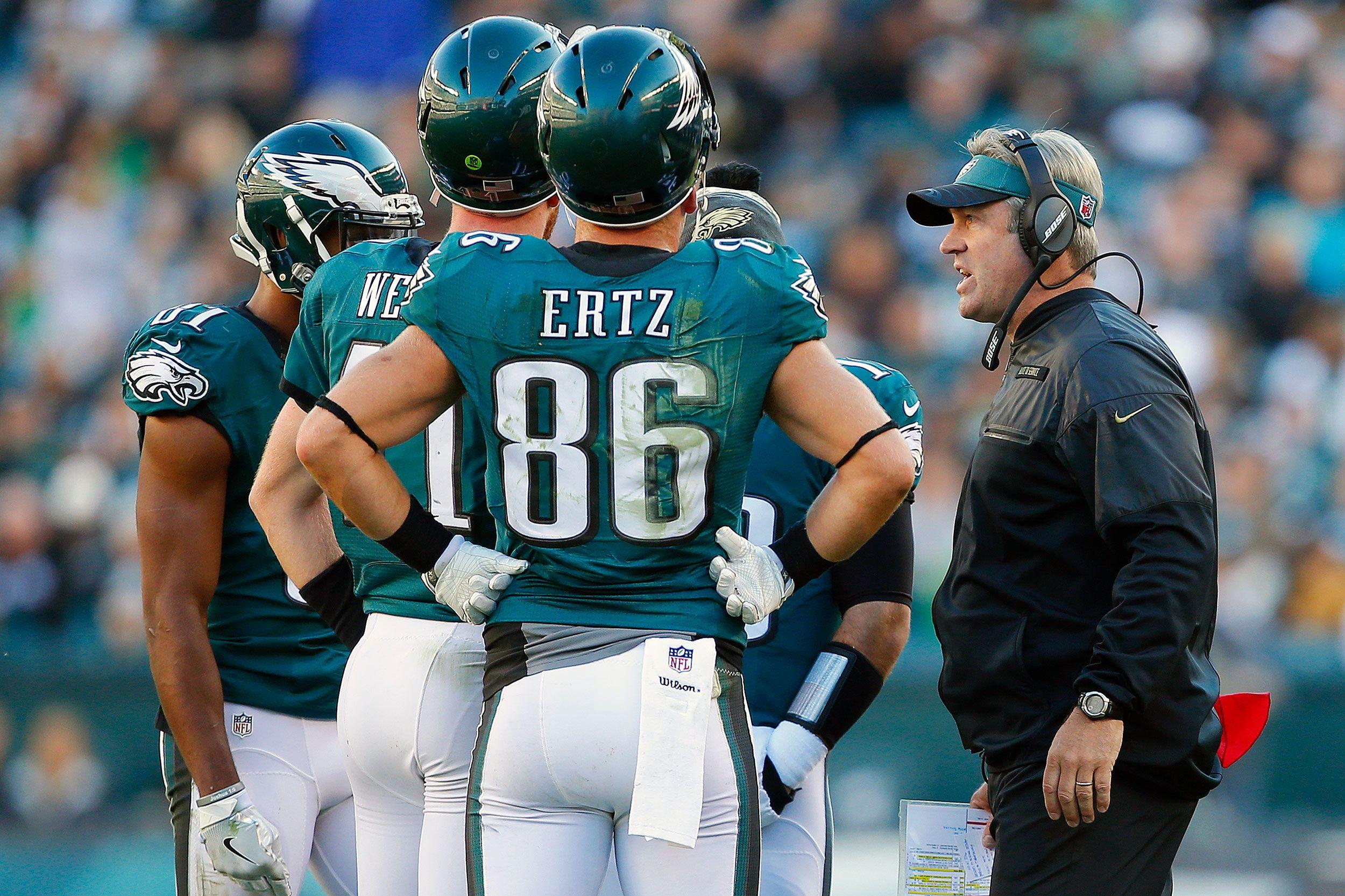 Both remarks are not-so-thinly-veiled barbs toward Kelly, whose harsh style could often turn abrasive. Beyond infamously overhauling Philly’s diet, Kelly proved exceedingly difficult to reach. “He was kind of a more distant head coach,” Kelce says. “There were like middlemen that you were supposed to talk to before you were supposed to relay a message to the head coach. It was just a weird situation.”