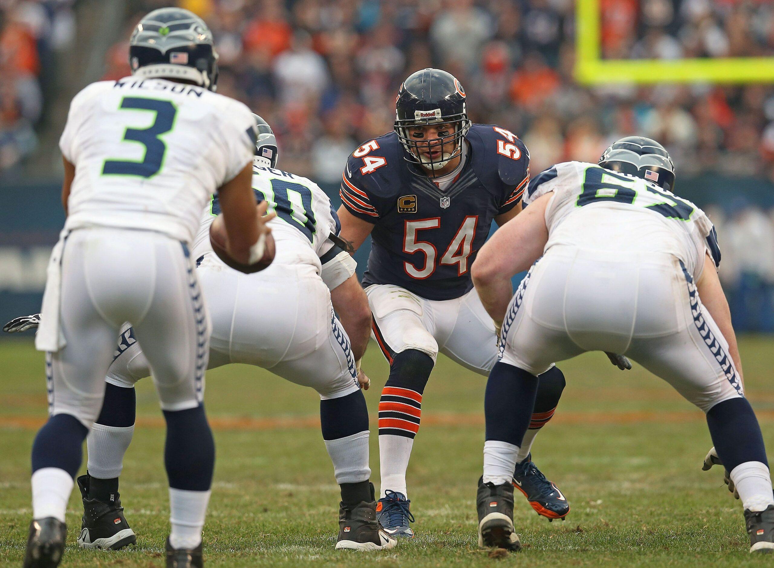 Urlacher made it, providing a fitting capstone to the legacy of a player who weighed 258 pounds at the 2000 NFL combine. That’s not outlandish for a linebacker from that era—except that Urlacher played safety in college. He clocked a 4.59-second 40-yard dash in Indianapolis, and after joining head coach Lovie Smith’s Tampa 2 defense, Urlacher was often asked to drop 25 yards deep in coverage. You can count on one hand the number of linebackers in NFL history who were better athletes than Urlacher, and he combined his physical gifts with a ferociousness that made him a perfect torchbearer in Chicago’s storied linebacker lineage.