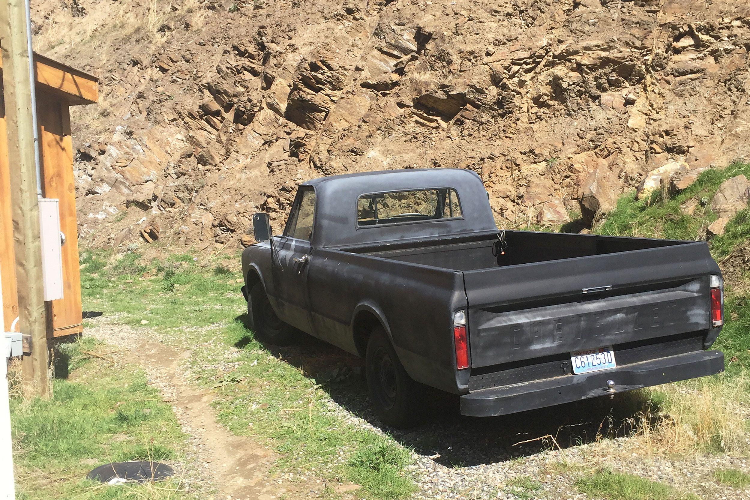 The Vander Esch property doubles as a place to store old machinery. Immobile four-wheelers and snowmobiles are grouped together a few feet back of the door. A 1967 Chevy pickup the color of black primer sits nearby; Vander Esch’s sister Shannon is in the middle of restoring it. The home is lined in yellow pine siding that Vander Esch and his father cut a few feet away. Inside, the same hand-cut wood frames the doorways.