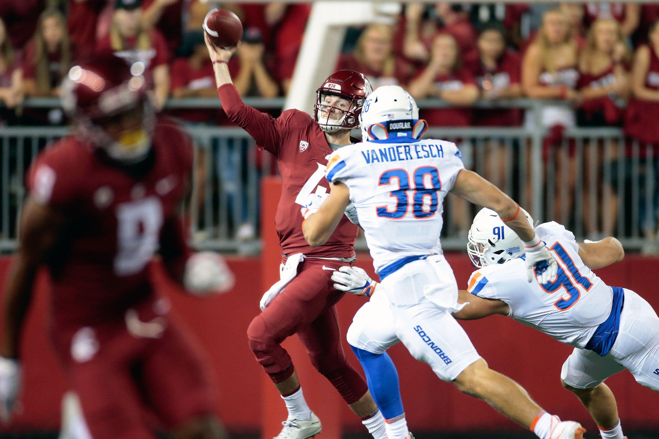 Over the next two seasons, Vander Esch’s role expanded from special-teams contributor to subpackage linebacker. Boise State’s second game of the 2016 campaign came against Washington State and Mike Leach’s Air Raid offense, a coverage challenge for such a tall defender. “You see this big ol’ long body playing linebacker and moving in space and doing different things—it was like, wow,” Avalos says.