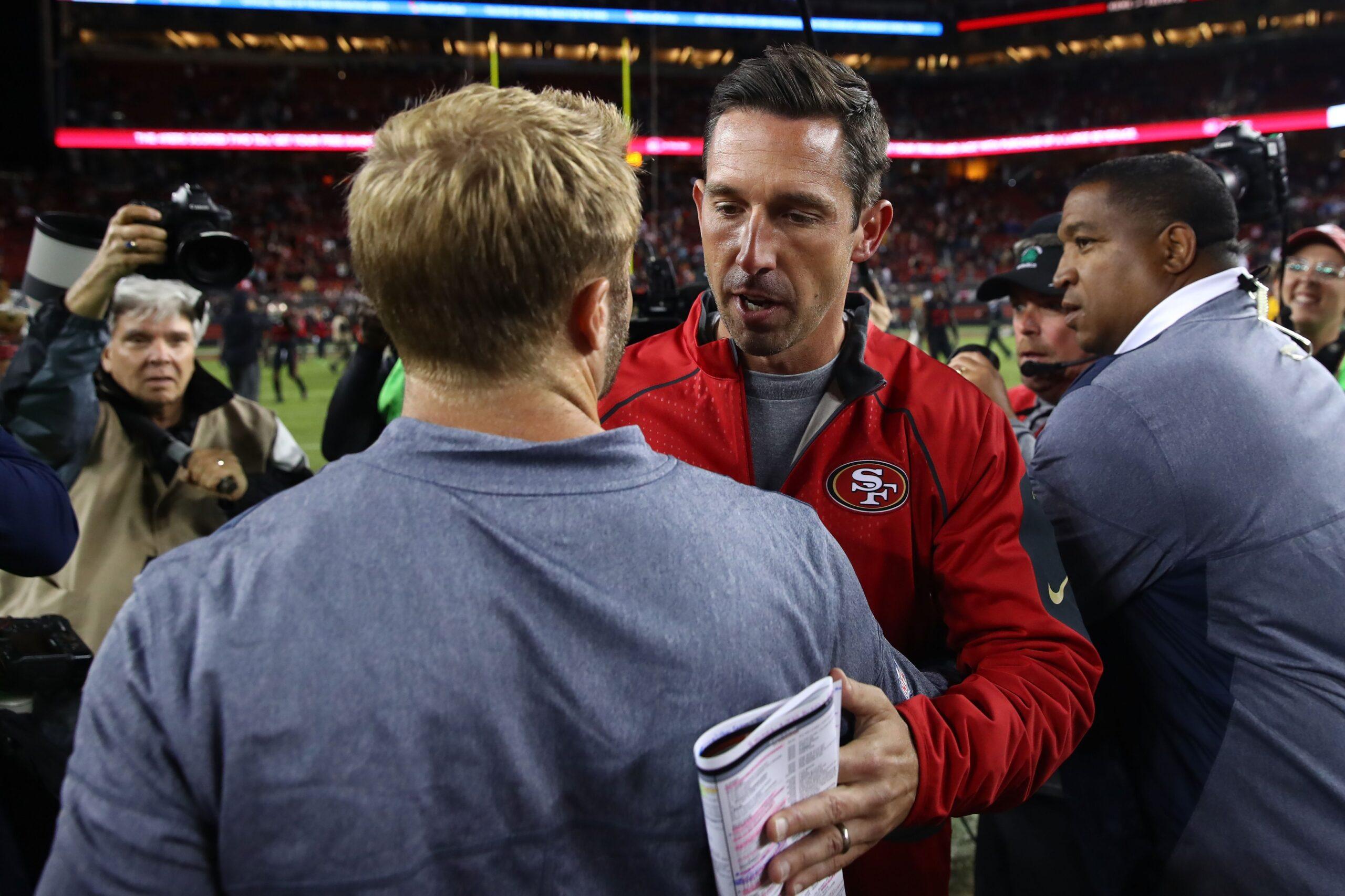 Shanahan folds in an additional layer of deceit by way of myriad heavy formations. The 49ers used 21 personnel (two backs, two receivers, and one tight end) on 28 percent of their offensive snaps last season, the highest rate in the league, according to Warren Sharp’s data. Some of that is driven by the investment the front office made in fullback/Swiss army knife Kyle Juszczyk; some of it is driven by Shanahan’s propensity for deploying larger sets to create traffic and fool defenses into believing they have to stop a play they’ve never seen. “You look at Atlanta when they went to the Super Bowl, they’re mixing in 13 [personnel],” McVay says. “They’re mixing in 12 or 21 looks, depending on how you want to look at that second tight end.”