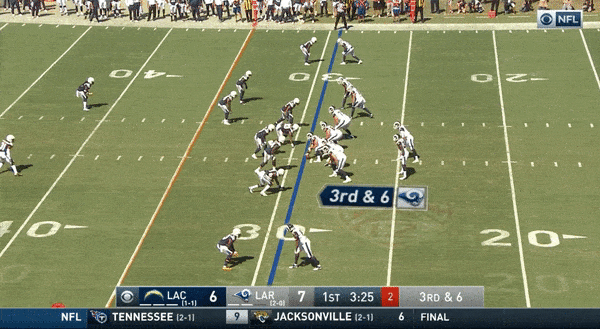 9. This week in tales of the tape: The Rams use stacks and bunches to create space for their receivers better than any team in the league. Facing a third-and-6 late in the first quarter this week, the Rams came out in the shotgun with four wide receivers. After initially aligning in the slot on the left side, Cooper Kupp motioned across the formation and set up in a two-receiver stack with Robert Woods on the right side. At the snap, Kupp delayed his release to allow Woods to clear out the cornerbacks on that side. With Woods streaking down the seam, Kupp worked a quick angle route underneath, hauled in a short throw from Jared Goff, and gained 11 yards for the first down. It may seem like a simple concept, but these are the types of wrinkles that make the Rams so difficult to defend.