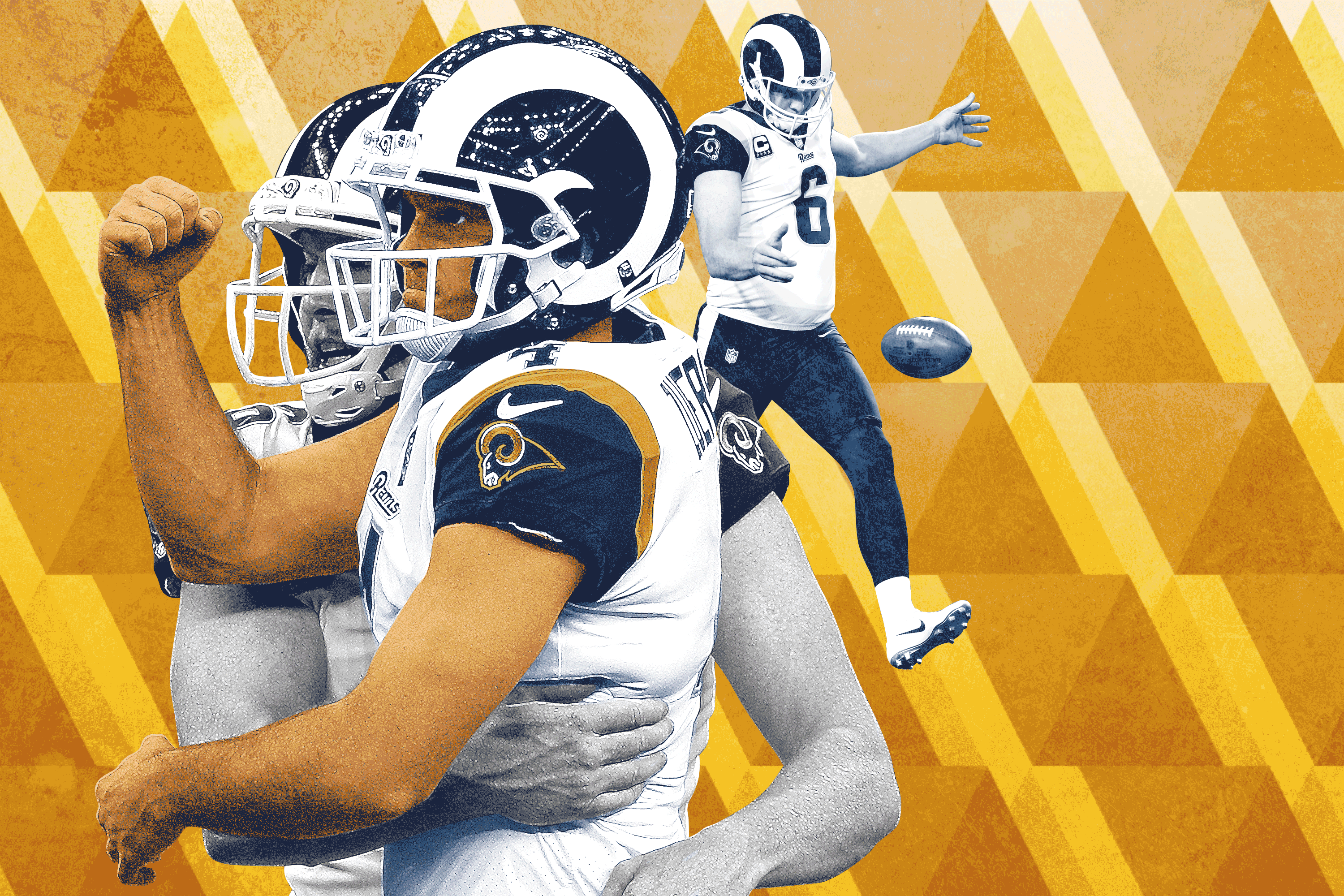 Yet given how dramatically the offense has improved under McVay, Hekker now takes the field far less than he used to. Hekker attempted a league-high 96 punts in 2015, because those Rams recorded fewer first downs than any other team. Hekker attempted 43 punts this season, tied for the fewest in the league, because these Rams recorded more first downs than anyone else. “We don’t have a lot of punts this year, because we’re an explosive offense,” McQuaide says. “If you’re punting the ball a lot and turning the ball over a lot, that’s what we were doing previously when we were bad.”