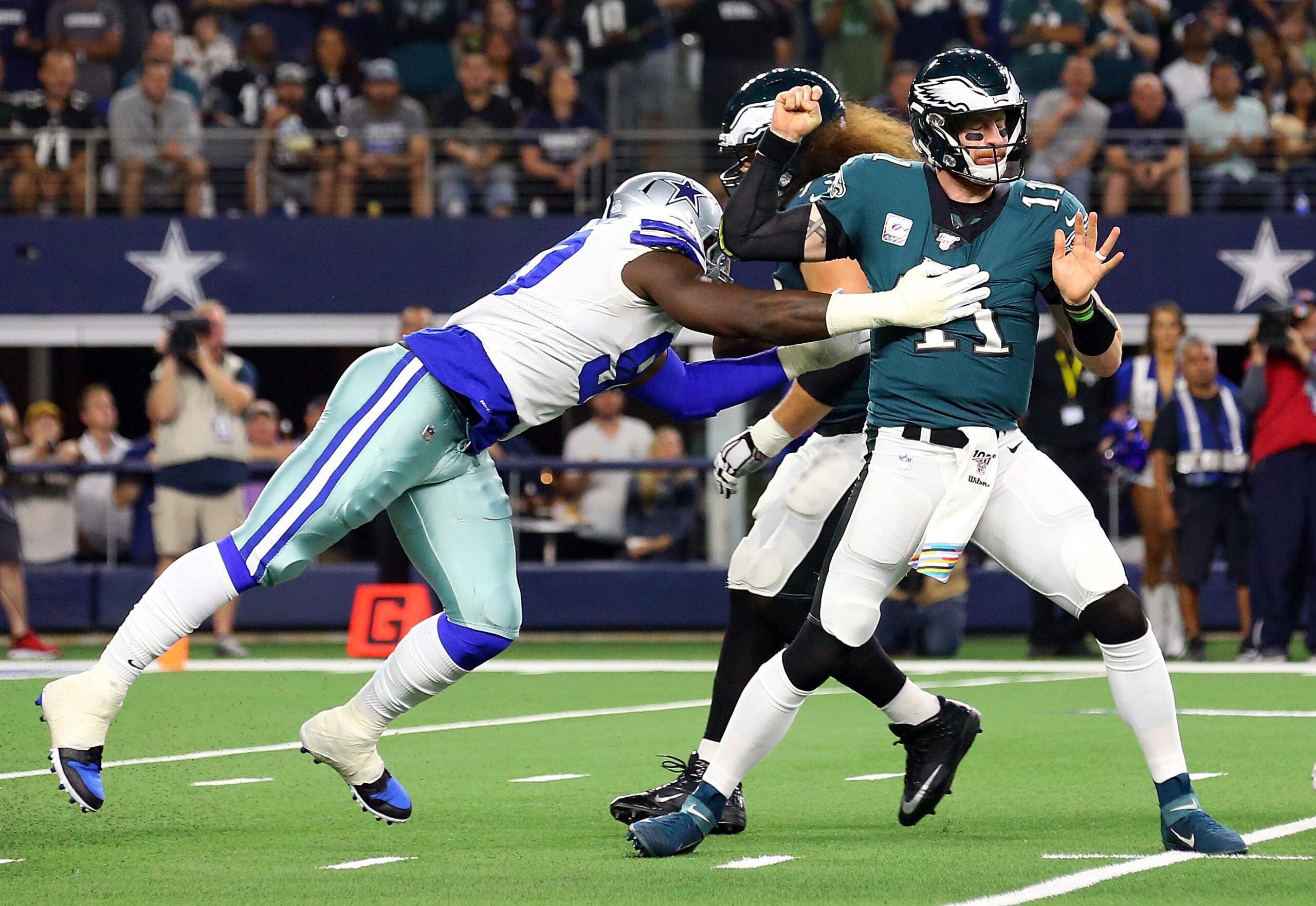 “Begin at the beginning,” Lewis Carroll wrote in Alice in Wonderland, “and go on till you come to the end.” It’s sage advice for storytelling, but particularly useful for the Eagles, who lost 37-10 to the Cowboys on Sunday night. Philadelphia was essentially out of this game after its first two drives. Tight end Dallas Goedert lost a fumble on the fifth play of the game. Six plays later, Cowboys receiver Tavon Austin scored a touchdown. Philadelphia’s second drive ended even quicker than the first. The Eagles needed just two plays to fumble again, this time when Dallas defensive end Demarcus Lawrence strip-sacked quarterback Carson Wentz. The Cowboys needed just two plays to score again. Six minutes and four seconds into the game, the Eagles were down 14-0. That disastrous beginning led to a predictable end. The Eagles went on to lose by 27 points, their second-biggest margin of defeat since Doug Pederson became their head coach in 2016, and in Pederson’s own admission, either the worst or second-worst loss of his tenure.