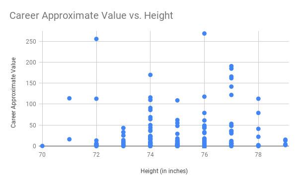 Here’s a scatterplot of every quarterback measured at the NFL combine since 2000, sorted by their official combine height and Pro Football Reference’s Approximate Value stat. (This metric isn’t perfect, but is designed to assess how valuable a player was for how long, which is noteworthy with regard to the draft.)