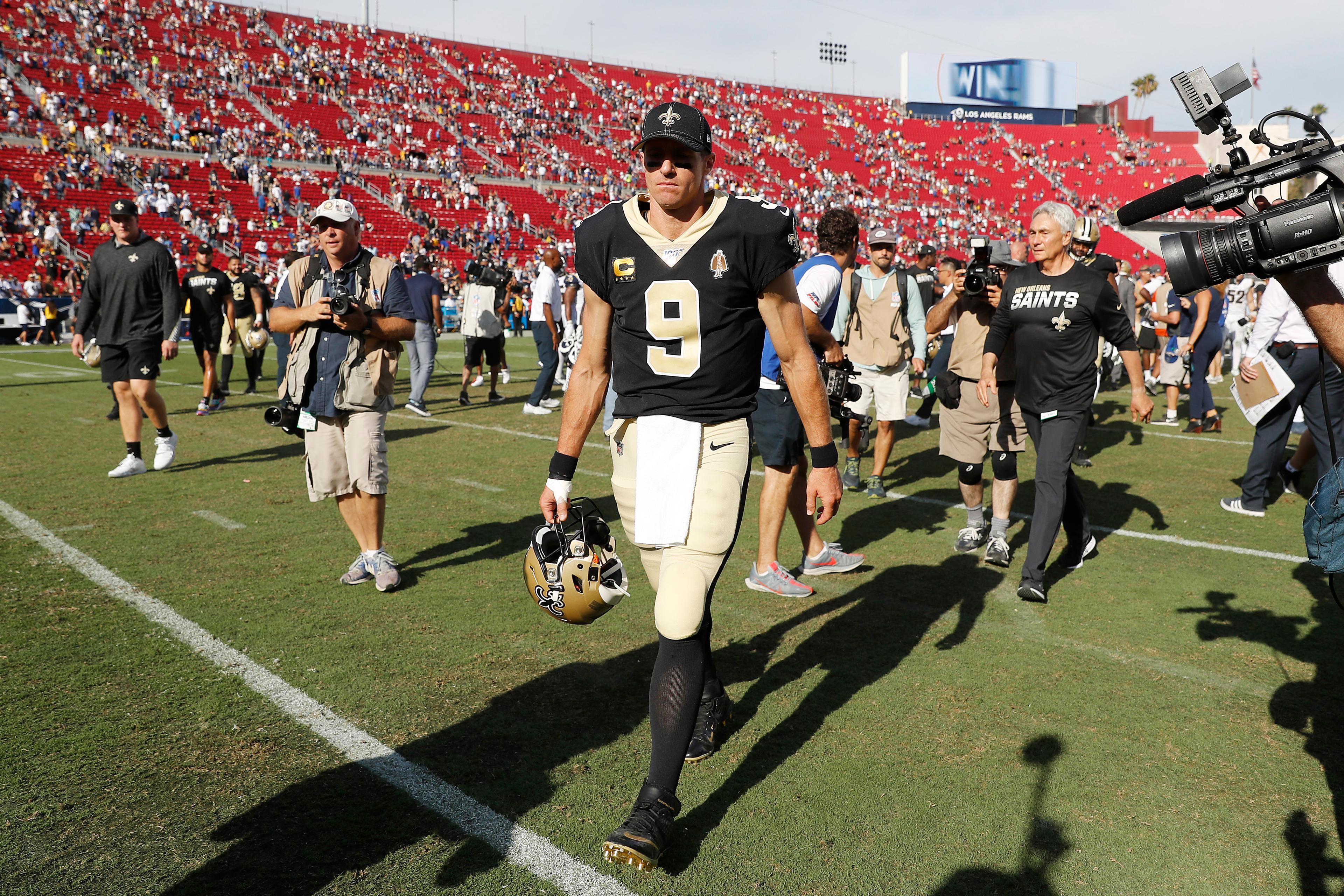 Brees may have been lonelier than ever watching the Saints offense from the sideline on Sunday. The Saints fell to the Los Angeles Rams 27-9 in the rematch of last season’s infamous NFC championship game. Another botched refereeing decision took a huge Saints play off the board, but the game was overshadowed by the thumb injury Brees sustained when Rams defensive tackle Aaron Donald’s hand hit the quarterback’s hand on a throw.