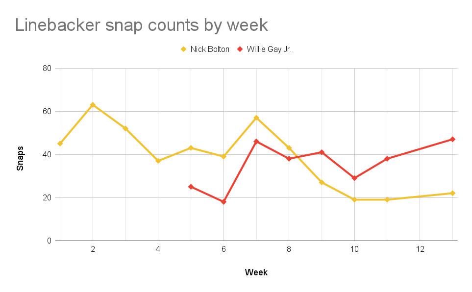 There’s one position that we haven’t addressed, of course, and that’s linebacker. This was the position that I really hammered in that ill-fated look at the Chiefs’ defense in October. At the time, the Chiefs were starting Anthony Hitchens and rookie Nick Bolton at linebacker, with Ben Niemann in as the third guy in for base sets. The return of Willie Gay Jr., a second-year player out of Mississippi State who was on injured reserve, spelled the only hope for an improvement in the Chiefs linebacking corps.