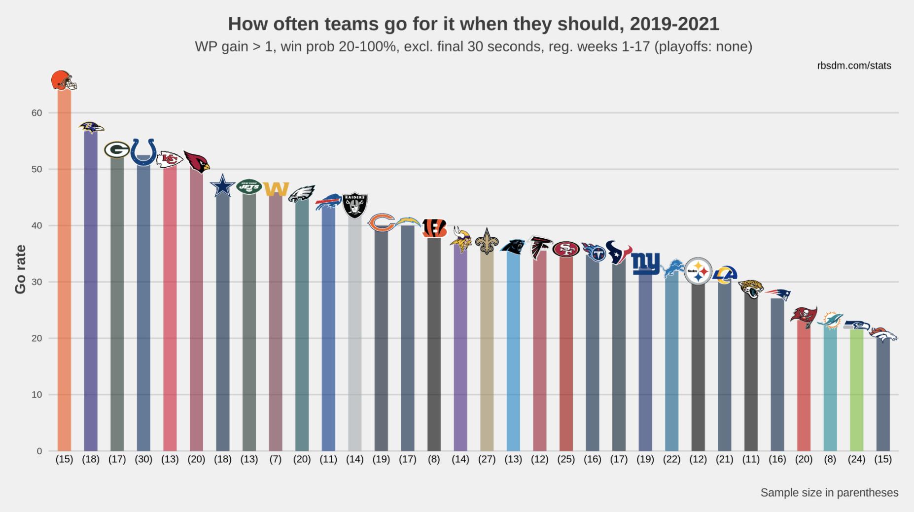 On top of the offensive shortcomings, Fangio hasn’t been a convincing game manager. Notably, his fourth-down decision-making has been predictably conservative. According to Ben Baldwin’s fourth-down model, no team has failed to go for it when the numbers suggest they should more often than the Broncos since Fangio took over.