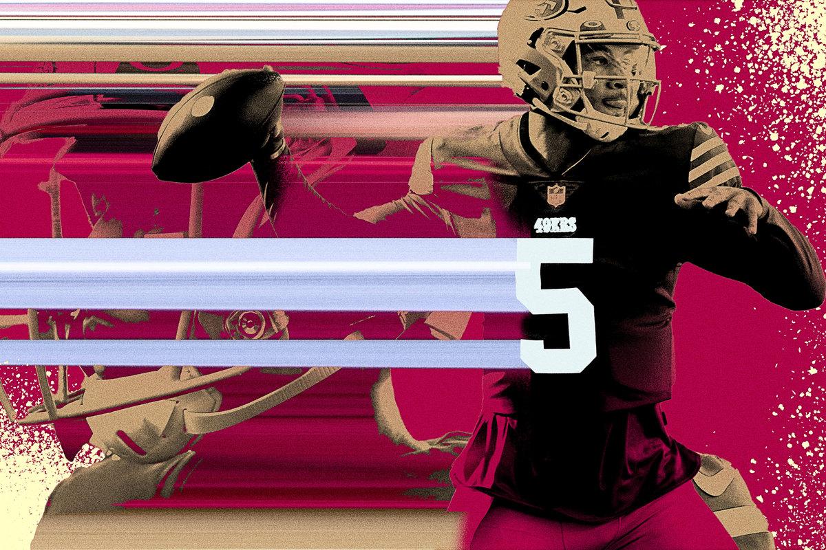 Shanahan said earlier this offseason that the 49ers offense won’t change with Lance as the starter. Even with the same terminology and playbook that Shanahan used with Garoppolo, that offense will have to function differently with a very different player at quarterback. Garoppolo and Lance are like photonegatives—Garoppolo is efficient, consistently completing around his career-average 68 percent of passes, and he is most comfortable throwing short (tied for 22nd among starting quarterbacks with an average depth of target of 7.5 yards last season). His lack of mobility means he adds a negligible amount on the ground. Lance completed only 58 percent of his passes in limited action last season (41 of 71 attempts) but he is a dynamic runner and would have tied for third among starters with an average depth of target of 9.3 yards if he’d had enough passing attempts last season to qualify. The 49ers are happy to trade some completion percentage points for the explosive plays they couldn’t get from Garoppolo; that trade-off doesn’t just alter the box score, it alters how the entire unit operates.