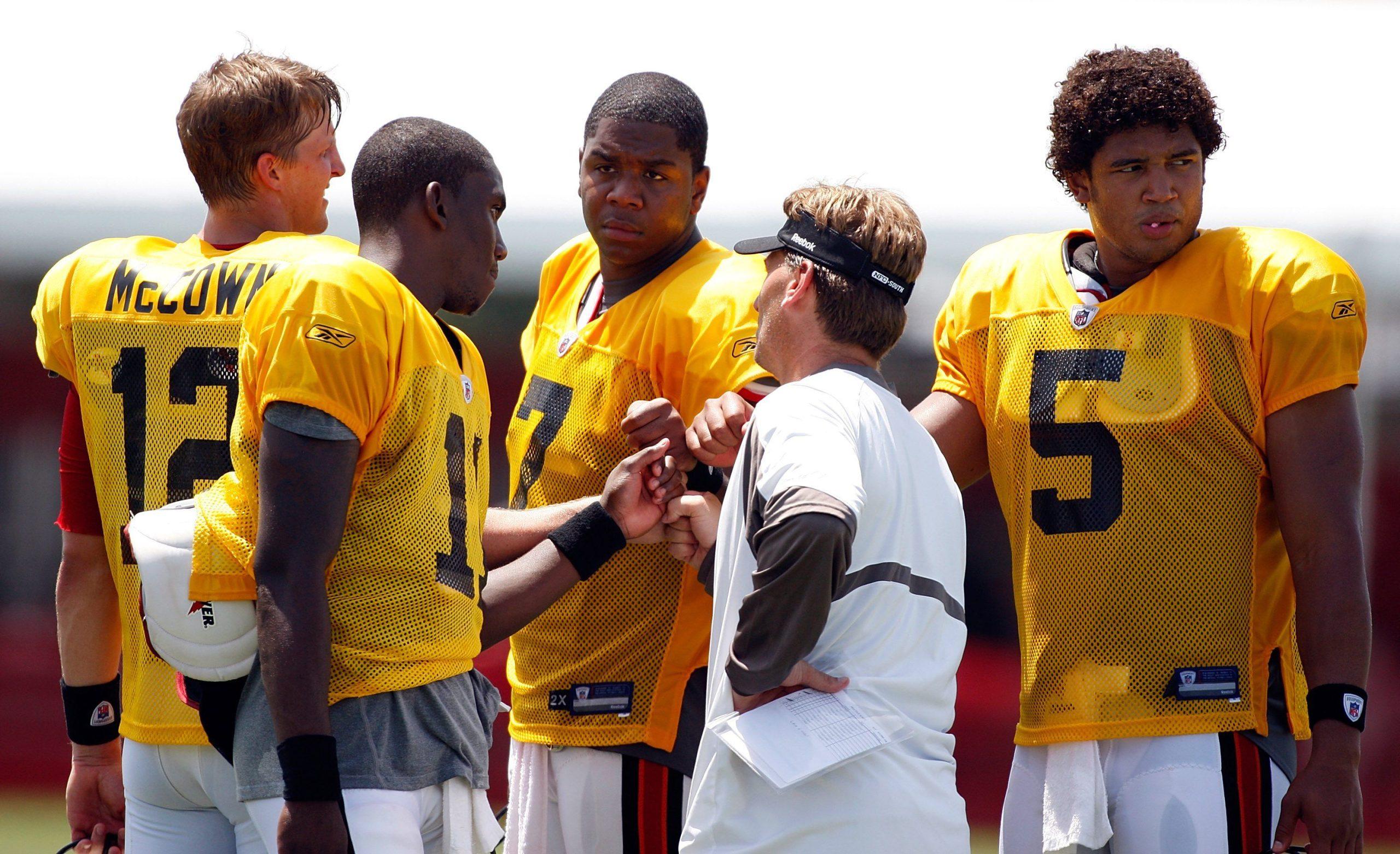 Unfortunately, the Buccaneers were probably lying to Freeman. When training camp began, it became clear that Leftwich and McCown were fighting for the starting job. “I’m not worried about what might happen after this year, what might happen during the season,” said McCown. “I’m focused on right now, this opportunity I have to be the starter.” One reporter speculated that the quarterbacks were close enough that the competition might carry on through the season, prompting a troublingly defensive comment from rookie head coach Raheem Morris: “That’s hard for me to think like that,” Morris said. “That would be talking about failure and I’m not interested in talking about failure right now. You pick a guy and you pick him for a reason.”
