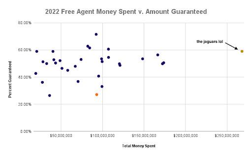 In 2021, the Bengals were dead last in the percentage of guaranteed free agency money: