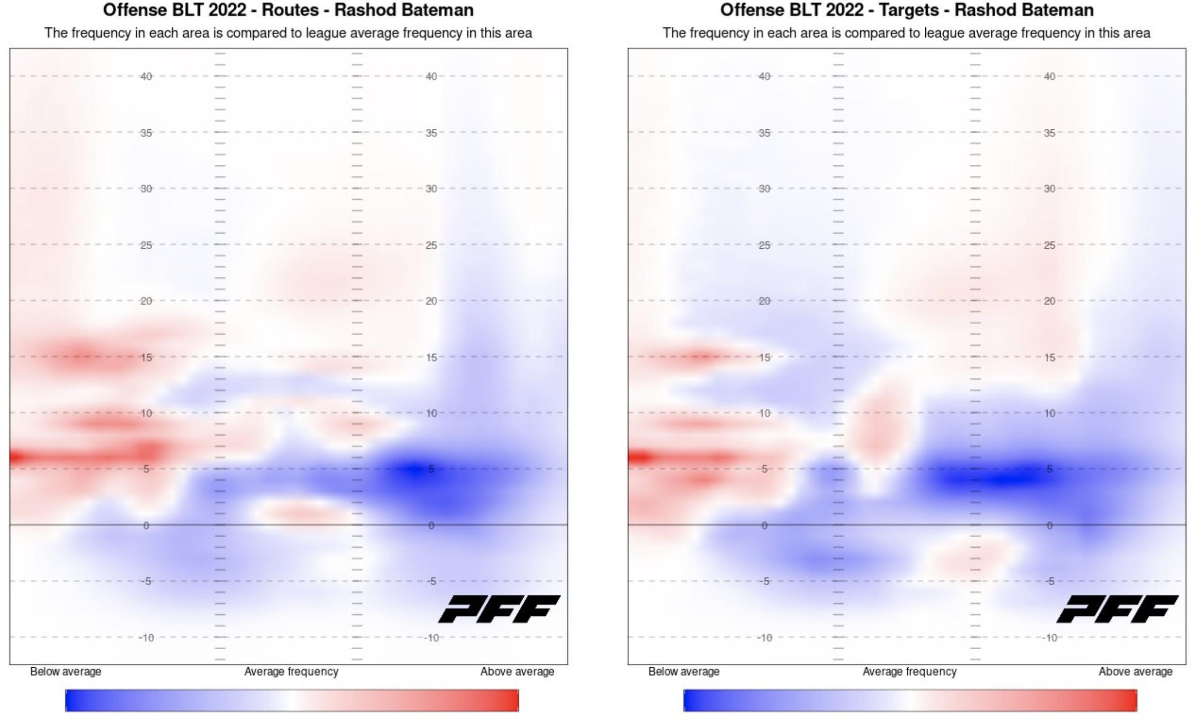 Even factoring in that dearth of talent, though, Roman isn’t doing a good job of featuring his best wide receiver, 2021 first-round pick Bateman. The second-year pass catcher has made the most of his opportunities, averaging 3.1 yards per route run, which ranks fourth in the NFL, per Pro Football Focus. But he’s been targeted only 16 times through three games. In the offseason, Roman said that he had added some new routes to the offense that would “showcase” Bateman specifically, but over half of the wideout’s routes have been short hitches or go routes on the left side of the field.