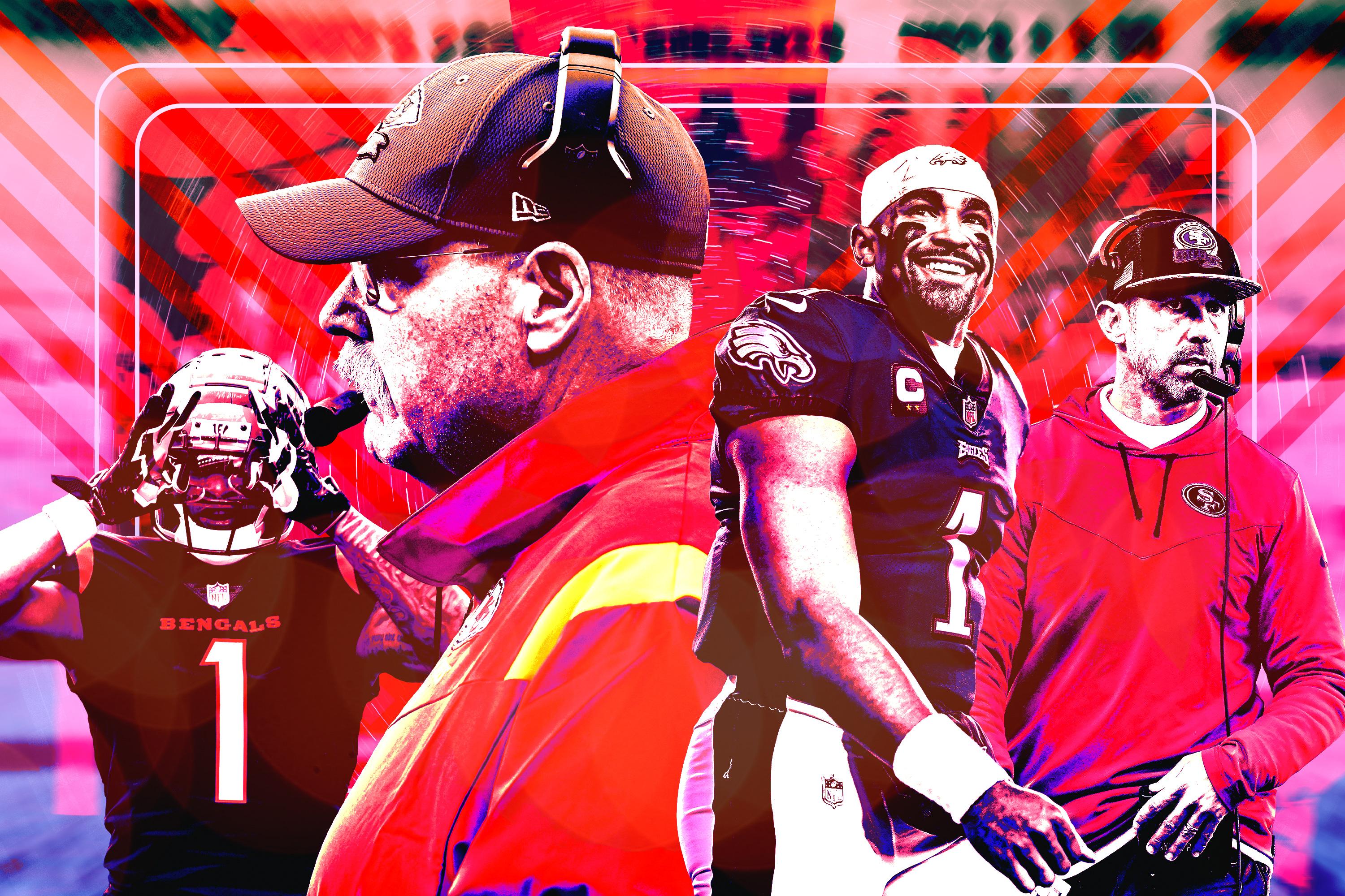 Jones: I’ve been going back and forth between the Bengals and Chiefs all week (just like the Vegas line). Ask me again Sunday morning and I’ll probably have a different answer. But as of this writing, I’m picking the Chiefs in the AFC; I know Burrow is on a heater, but something just tells me Mahomes isn’t going to lose back-to-back title games at home. I’ll take the Eagles and their complete roster in the NFC.