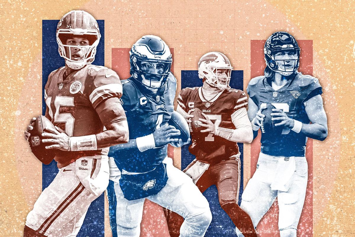 That’s all to say that some regression for this group is likely. I just don’t think it will be a drastic drop. Hurts, wide receivers A.J. Brown and DeVonta Smith, and tight end Dallas Goedert are either in their primes or ascending players. The offensive line is one of the best in the NFL. And given how much Hurts has already improved, it’d be silly to put a cap on his ceiling. He’s 25 years old, and last season, he ranked sixth in Next Gen Stats’ completion percentage over expectation metric, which assesses accuracy based on the difficulty of each throw. He also had the fifth-lowest interception rate (1.3 percent) among starters.