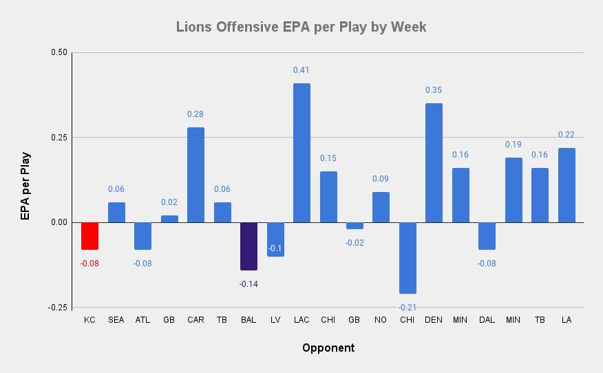 Here are the Lions, who played both the Ravens and the Chiefs and who are fourth in pre-snap motion rate.