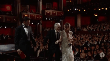A quick aside: There’s a moment during Hathaway’s speech when the camera cuts to Hathaway’s very proud costar Hugh Jackman, and you can see Justin Theroux behind him. It’s the most beautiful thing I’ve ever seen.