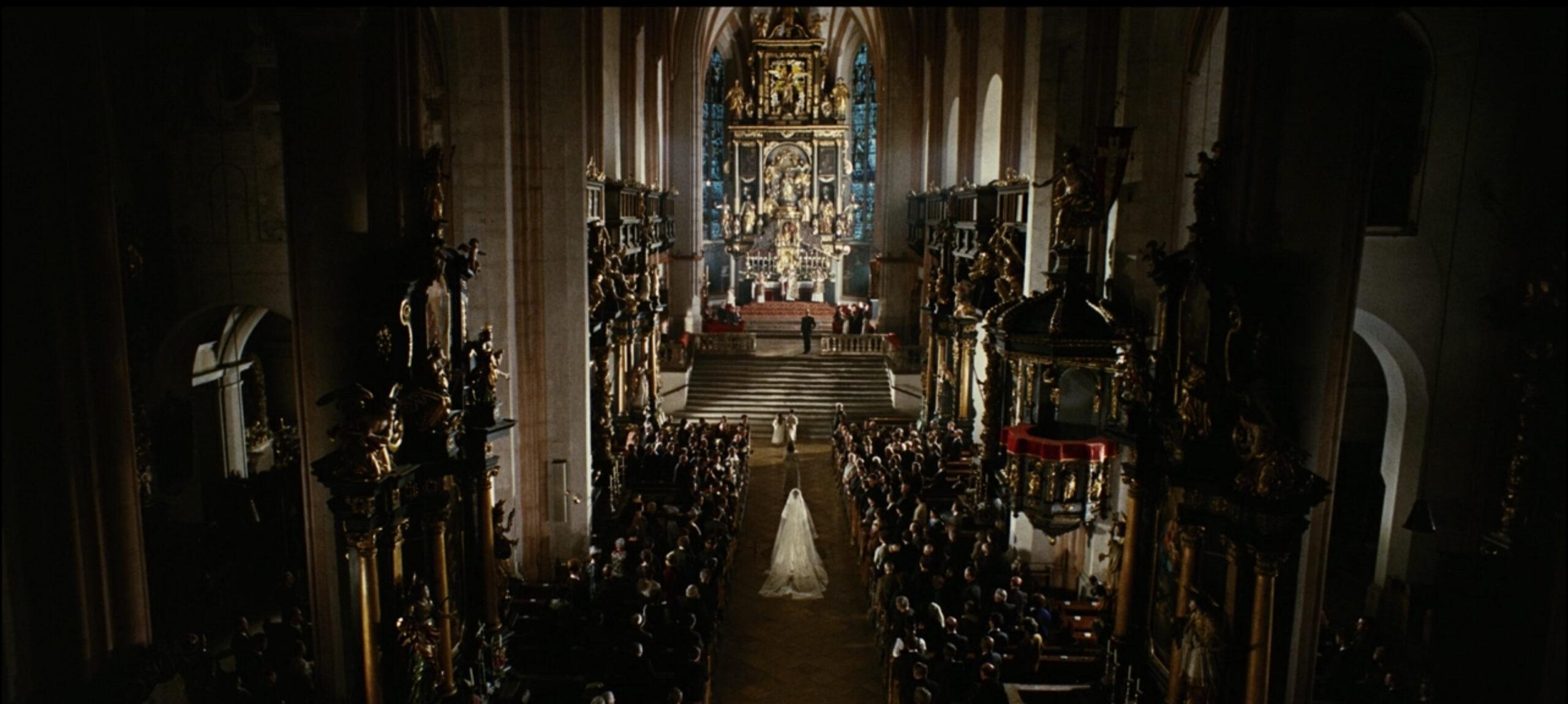 The accoutrements: Oh, the things that can be accomplished to celebrate the union of a former nun and a filthy rich Austrian captain. Pure beauty! What class! Julie Andrews looks like an angel in that wedding dress! They appear to be getting married by a cardinal! Look at this church!