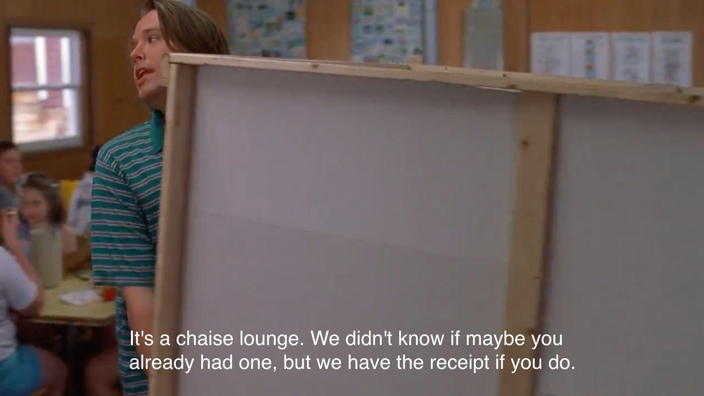 Bonus points: 0—but can I just say it’s weird that the people who were at the wedding watch the wedding video the night of the wedding? Like, the wedding just ended, and Rod Tidwell was like, “All right! Let’s fire up the VCR and rewatch what we just lived!” It’s a necessary moment to showcase the doubt racking Jerry Maguire, but maybe that scene could’ve happened the next day? Everyone should’ve just been slamming Budweisers like Bonnie Hunt.