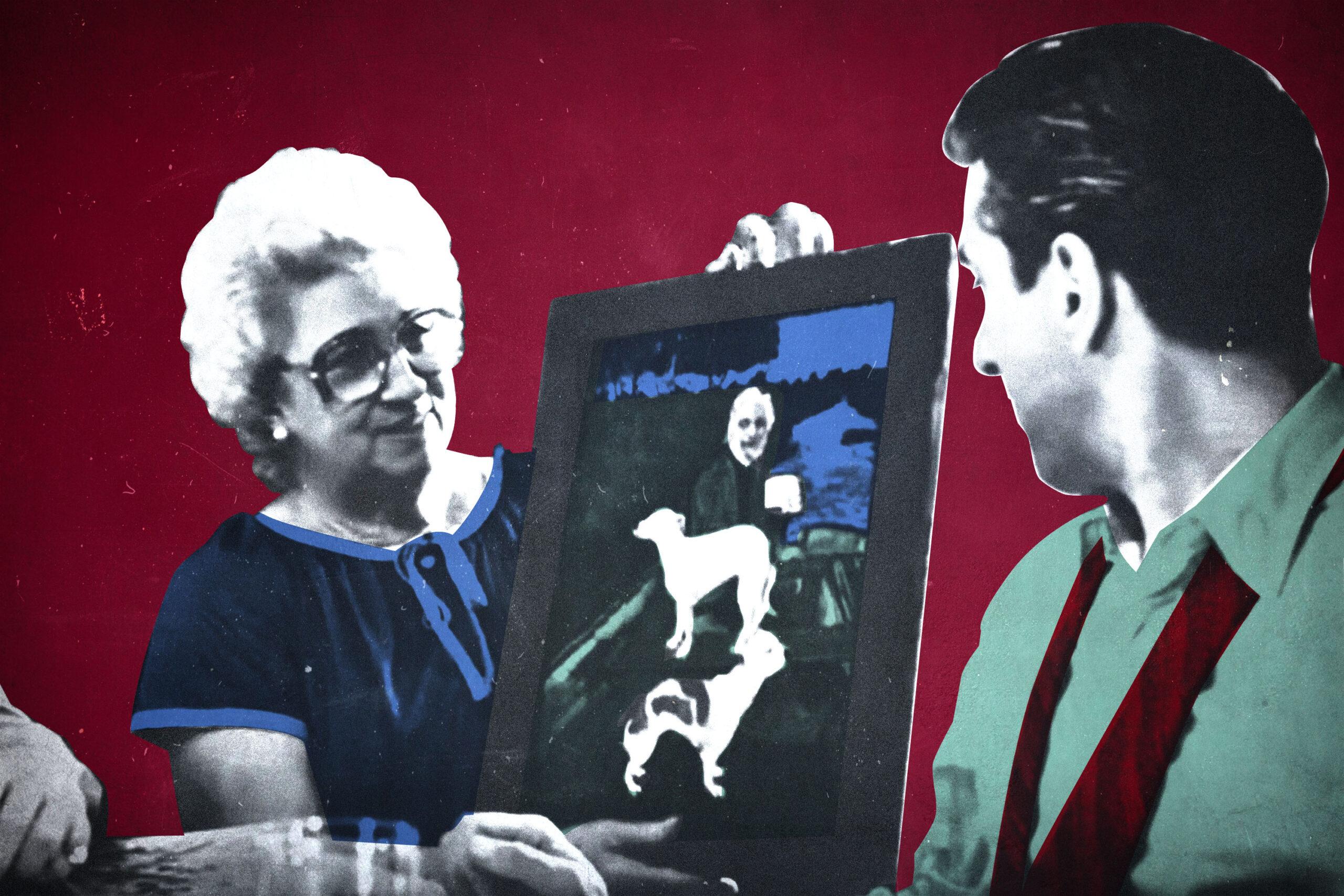 After Weaving’s death in 1987, a bronze bust of him was installed in the Shannon Harbour. Chances are you’ve never seen it. But if you’re here, you know Weaving’s face: his long beard and white hair tousled by a breeze, his weary but warm eyes sitting just beneath his dark, bushy brows. There’s a chance you can also recall a particular outfit he once wore—a green blazer and black turtleneck—and you most certainly remember Brocky and Twiggy, and how they sometimes liked to face in opposite directions. That’s because Weaving was immortalized in a manner that’s gained far more acclaim than the bust or the National Geographic feature—he and his river dogs are the real-life inspiration for Tommy’s mother’s painting in Goodfellas, which makes him the real-life inspiration for one of the most famous paintings in all of cinema.