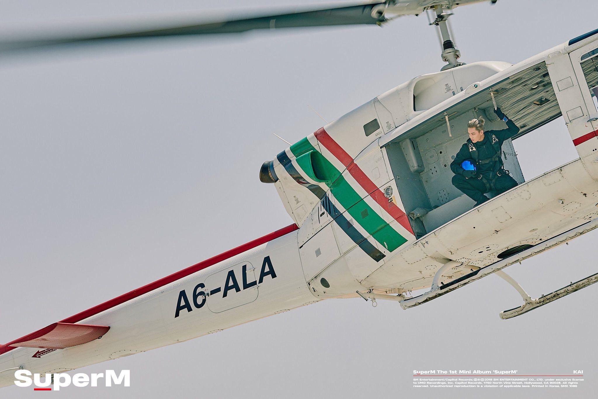 “It was my first time in a helicopter,” he said. “They told me it was going to fly really low, and I thought I could handle it. But all of a sudden, they put me up in the helicopter, and it flew around the area four times. The director and cameraman yelled, ‘Keep your eyes open! Have good facial expressions! Fight the wind!’” Kai imitated the shouting crew members, then leveled his signature intense gaze at me in a re-creation of the action-star pose he was going for.