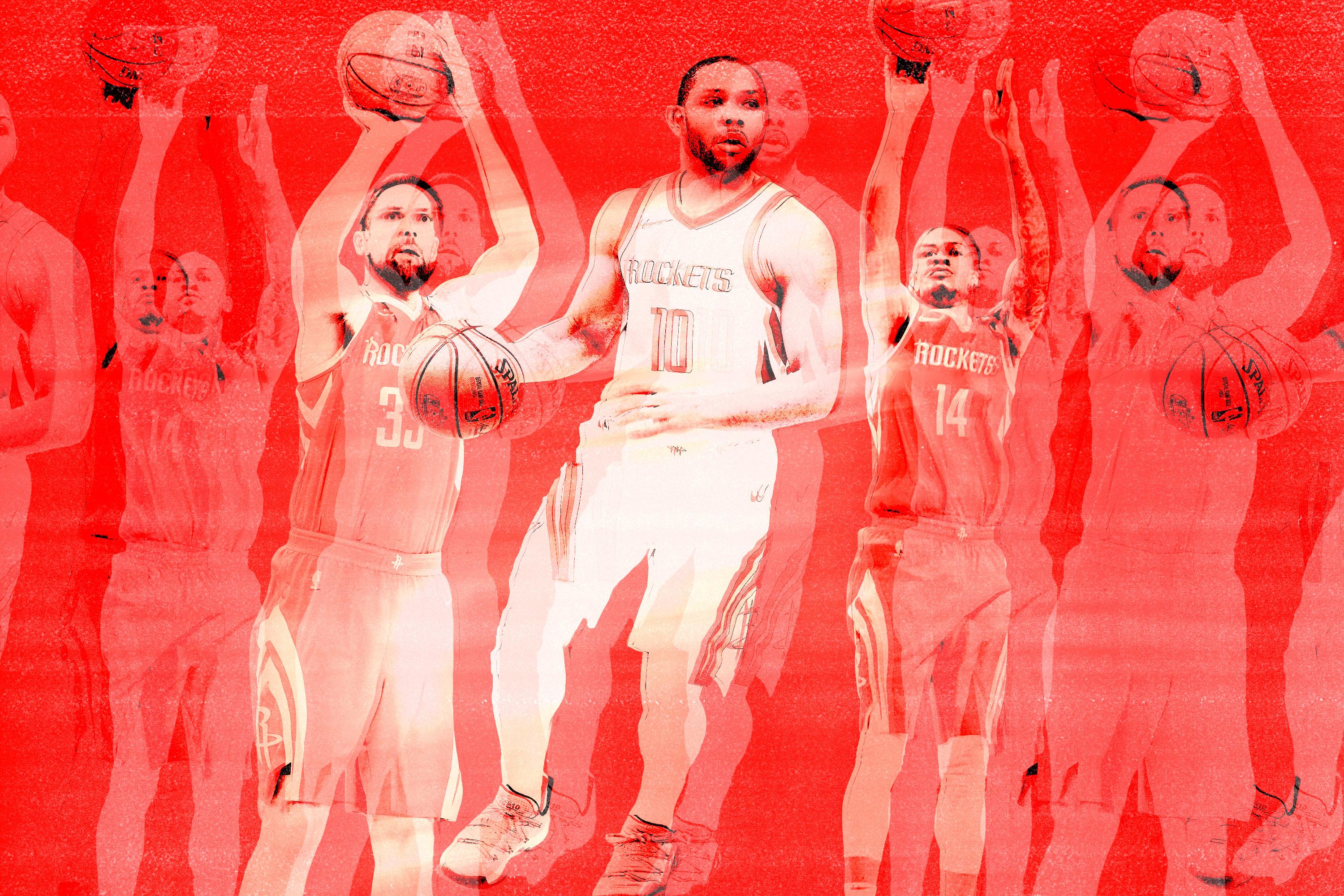 The Rockets leverage those threats in a way few other teams ever have. Eight of the 10 players in Houston’s regular rotation are attempting at least three 3-point shots per game. Six of those eight players are knocking down those shots at a league-average rate or better, and none of those players is Gordon, whose numbers are a bit down from his career 38 percent 3-point average, due to an increase in defensive attention.