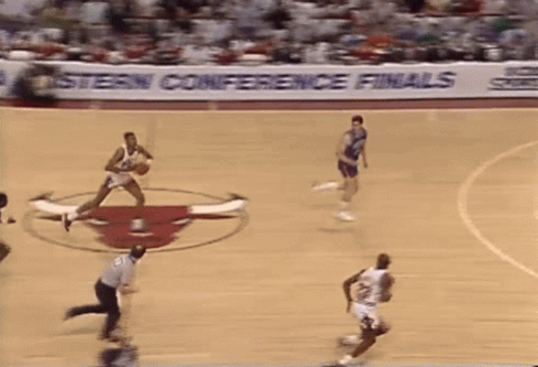 Here’s the thing of it, though: The shot actually, and incredibly, and miraculously, and unbelievably went in. It floated juuuuuuuust past the Grasshopper’s fingers as he swiped at it, caught juuuuuuuust enough of an edge of the backboard, and came off it at juuuuuuuust the right angle to send it through the net. The entire thing was ridiculous. It was almost like that play where Jordan hit that backward, spinning, no-look and-1 layup over Bill Laimbeer in the 1989 playoffs, except if you replaced all the artistry and brilliance of the play with incoordination and nacho cheese.