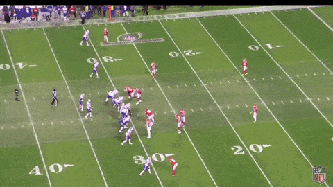 That clip is an example of Mahomes’s greatness, but it also serves as an example of Buffalo’s teamwork in coverage. Watch as they push their zone responsibilities to the right side of the field to counter Kansas City’s attempt to overload that area with four receivers.