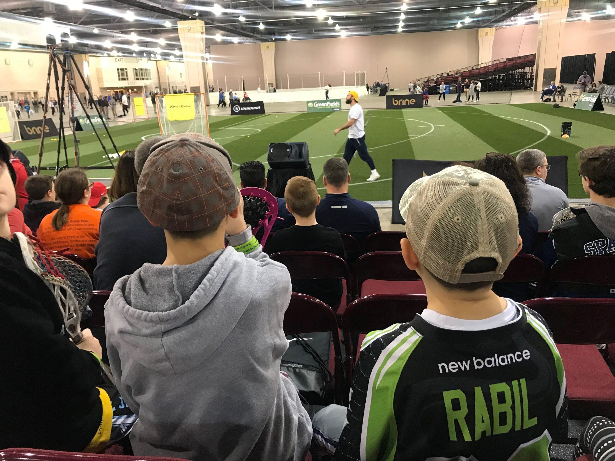 Around the floor, there is a booth for just about anything lacrosse-adjacent. Comfy lounges invite consumer-athletes to hang out for a while and string up newly purchased sticks with newly purchased mesh. One vendor’s sign hawks a business dedicated solely to managing youth tournament travel logistics. Another one says: “Jewish Lacrosse Camp.” A teen and his dad demonstrate virtual reality goalie training software they have developed for the Oculus; the line to try it is long. There is no booth for Major League Lacrosse this year. I’ve been to this expo center before, for the Philadelphia Flower Show with my mother, and the two events have at least one thing in common: booths featuring different kinds of artificial turf that one can run a hand over and murmur “mmm, yes” about. Like any good industry expo, LaxCon is less a sick rager and more a celebration of highly specific nerdiness and capitalism.