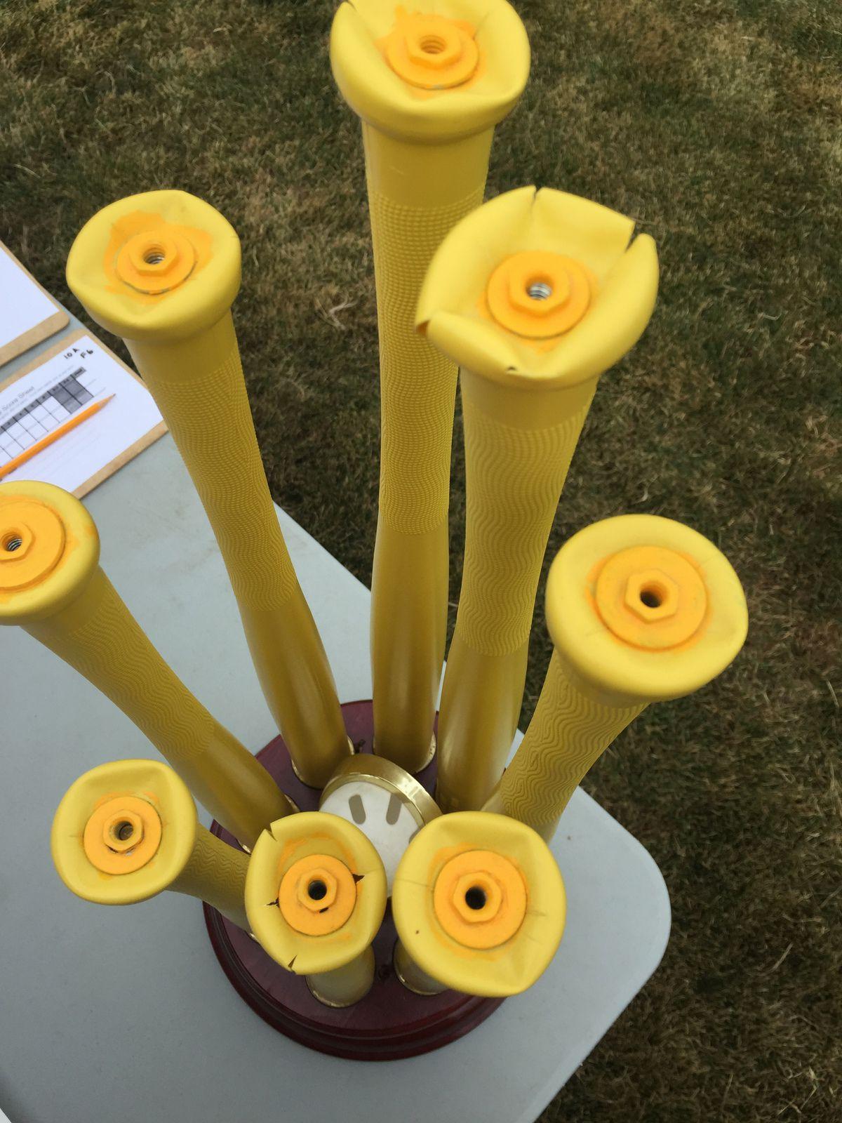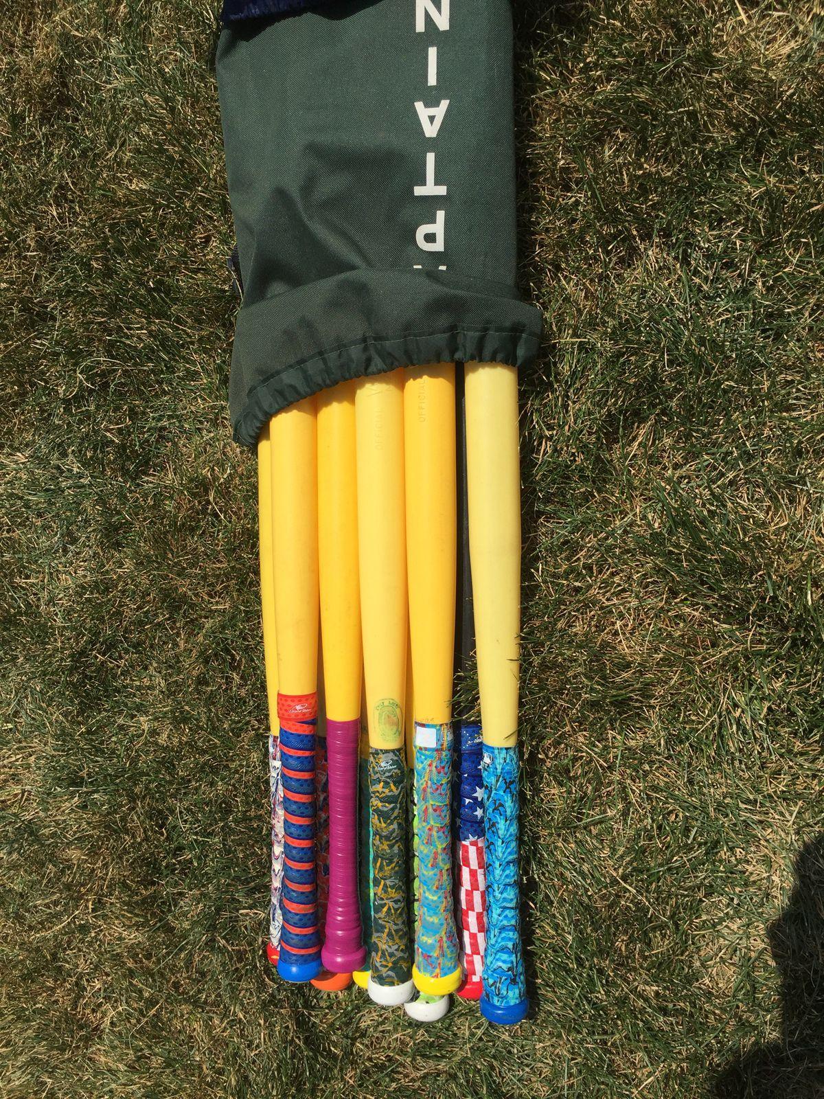 The classic yellow bat is also a matter of disagreement; as the Wiffle ball market has grown, so have alternate products made from more powerful materials and advertising increased ability to hit home runs. One ranking system gives the yellow one just 17 points out of a possible 30, across categories for pop, distance, and grip, making it one of the worst bats for sale. But that hindrance doesn’t stop folks at the WWBC. When asked about the debate, most players at the tournament say they’ve never even tried using a fancier bat; they all agree that they wouldn’t want to compete with anything else. “It’s not Wiffle ball if the bat is not that color,” one remarks. (Wiffle Ball Inc. agrees, having trademarked bats featuring that particular shade of yellow.) Here, the only allowed alteration to the ubiquitous yellow stick is one layer of tape on the handle for grip—typically plain electric tape for the less competitive teams and a colorful, patterned product called Lizard Skins for the pros.