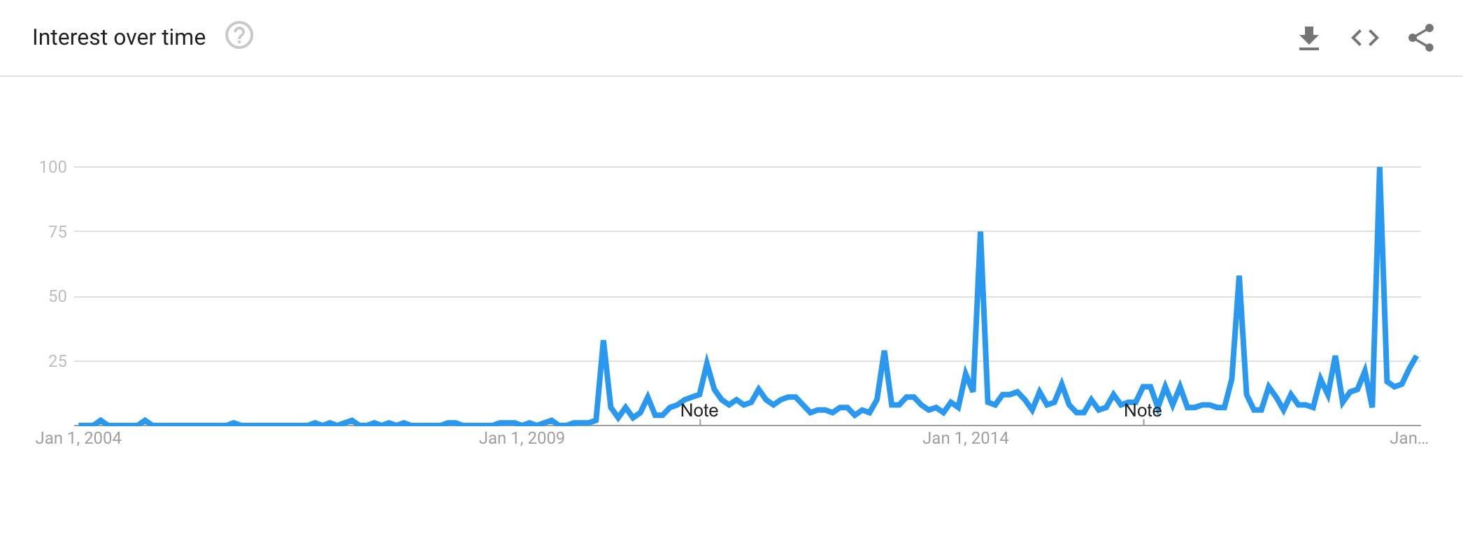 Google search interest in the term “EGOT” from January 2004 to January 2019