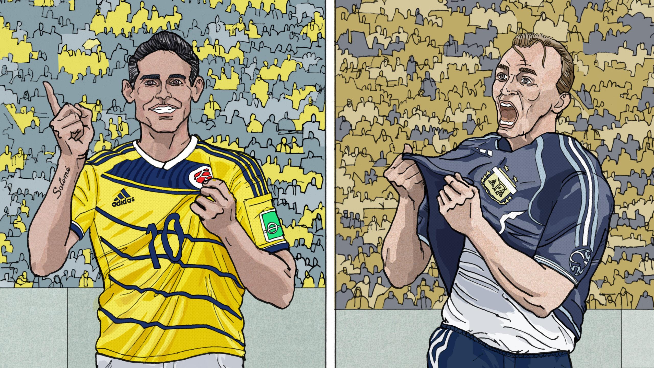 A double-goal episode! Brian compares two of the most sublime moments in World Cup history: Argentina’s elaborate team goal against Serbia and Montenegro in 2006 and James Rodríguez’s stunning solo strike against Uruguay in 2014. Which type of goal better expresses the essence of soccer? We’ll also discuss French swashbucklers, midfielders who hate running, and giant grasshoppers that may or may not come from outer space.
