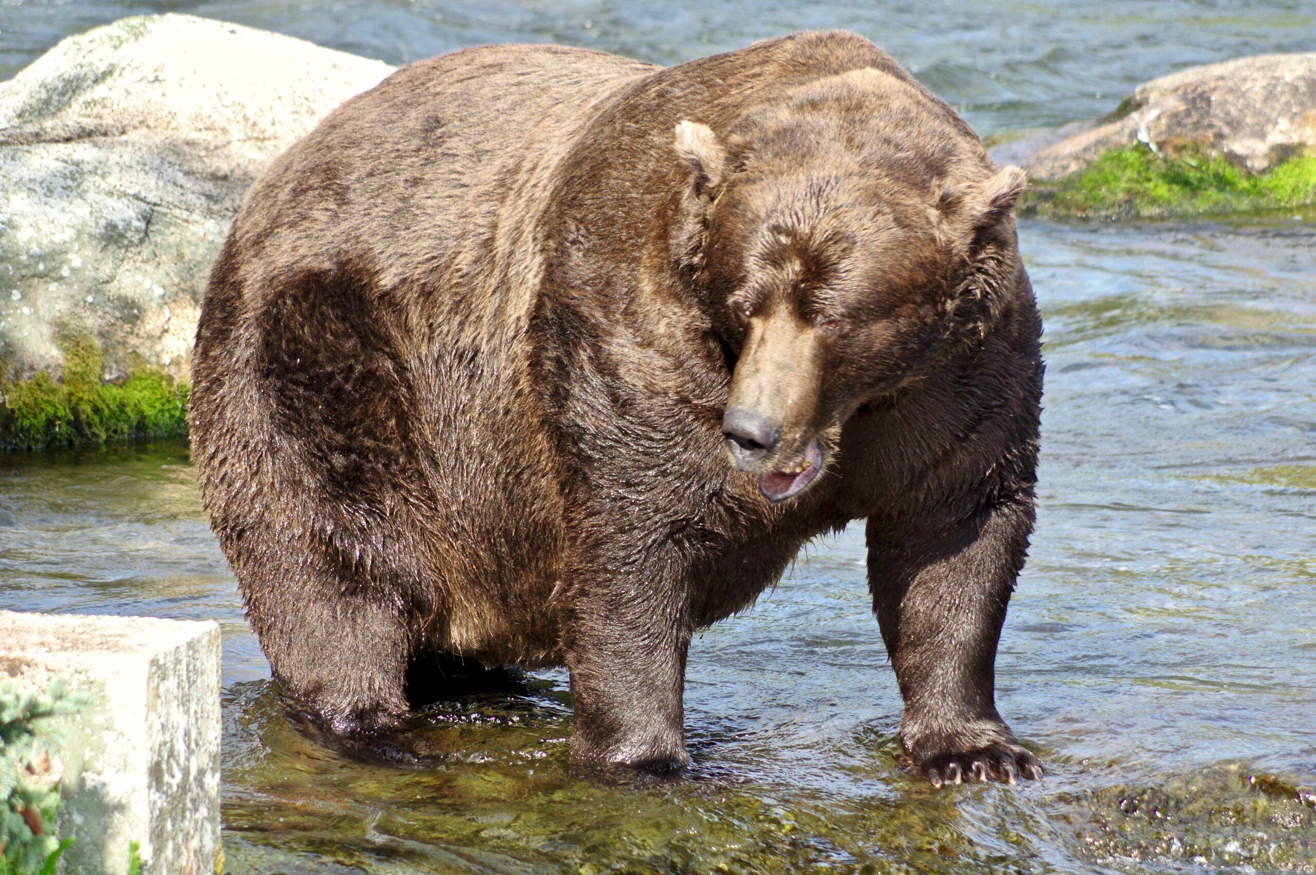 Boy, has he earned it—747 is truly a fat bear. Suspected to be one of the largest bears living today, 747 isn’t so much a brown bear, as the brown bear. Some people might wonder how a bear so clearly fat, who has made it to the Fat Bear finals so many times, has never had more of a leg up in this contest that specifically honors fat bears. But I think it’s precisely because of 747’s innate size-privilege that Brooks Falls’ curviest constant has never won. (Also, I don’t think 747 could lift his leg up right now if you paid him 1 million salmon.)