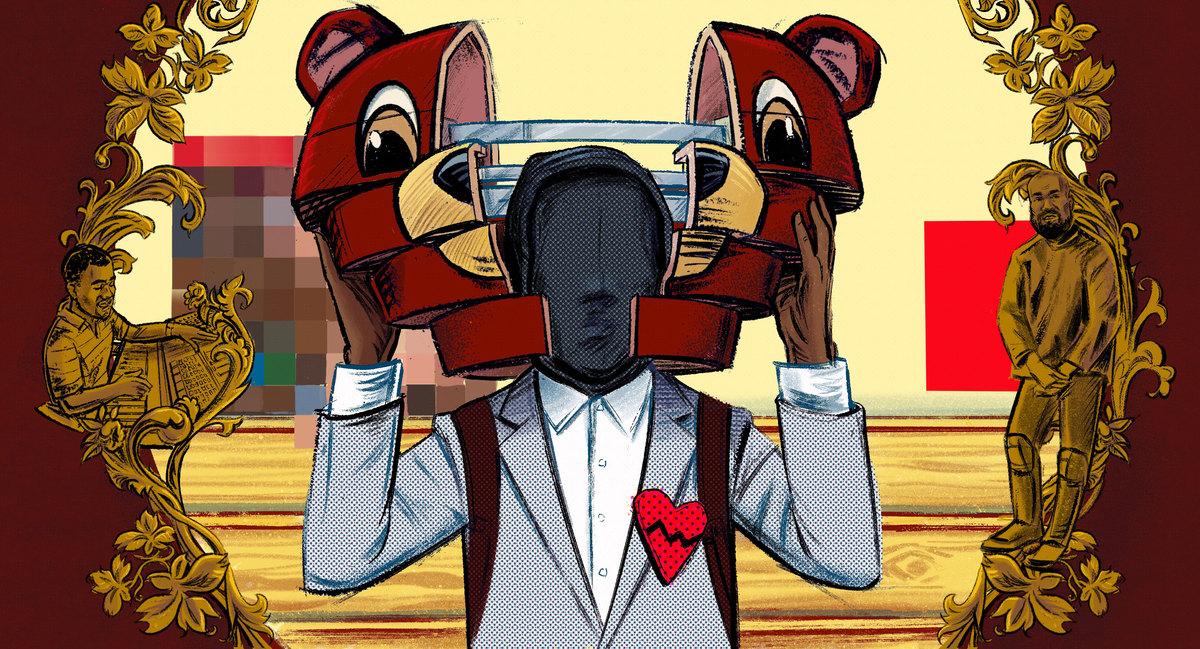 Aziz Ansari—in his stand-up comedy and also in character as the goofy millennial swaglord Tom Haverford on Parks and Recreation—used to make Kanye out to be this sort of misunderstood sweetheart with the best of intentions. Sometimes I’m convinced that Aziz, more than Kanye himself, over the years authored the “old Kanye” caricature of “I Love Kanye.” But increasingly, after Graduation, Kanye resisted this very sort of cutesy trivialization. He scrapped the recurring bear mascot as well as his plans to continue the styling and theming of his earlier albums—The College Dropout, Late Registration, Graduation—with a long-rumored album titled Good Ass Job. Instead, pivotally, Kanye released 808s & Heartbreak, a strange and unexpected album full of bleak and heavily Auto-Tuned singing largely devoid of conventional rapping. With a dreary mechanical wail, Kanye was echoing Lil’ Wayne and T-Pain but to a far more forlorn effect. Kanye released 808s a year after his mother died from heart disease and complications suffered during cosmetic surgery, and the music reflected his grief rather ominously. This would’ve been the earliest cause for fans to start missing “the old Kanye,” the one with the drawl, the one who pushed miracle whips. This was also the beginning of a morbid fascination with the rapper’s emotional state, out of genuine concern for a grieving son as much as—if not more so—out of an unseemly interest in the musical implications. Kanye is depressed—he’s about to drop a sadboy classic.