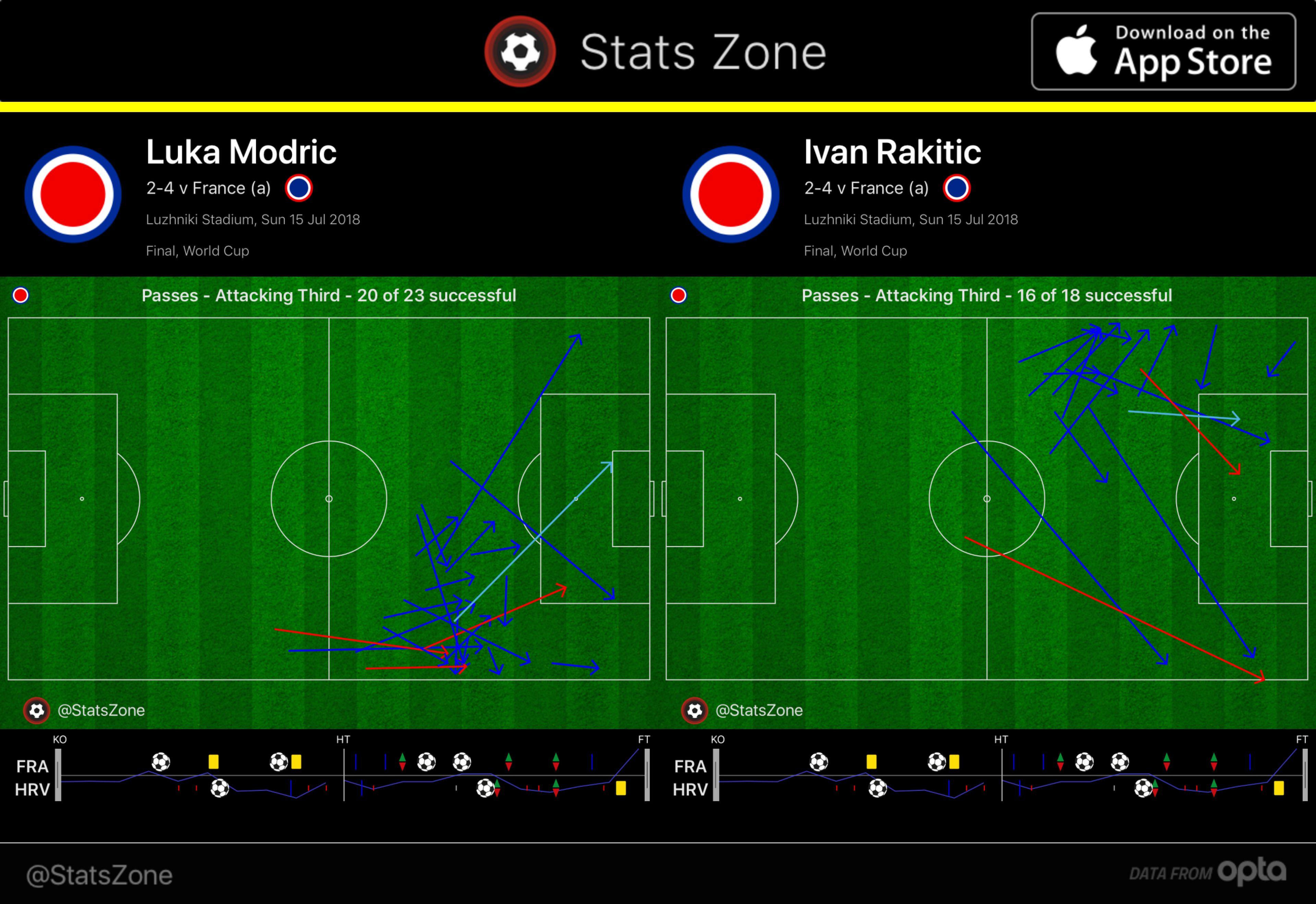 France as a whole completed just 27 passes in the final third across 90 minutes, while Modric and Rakitic alone exceeded that number: