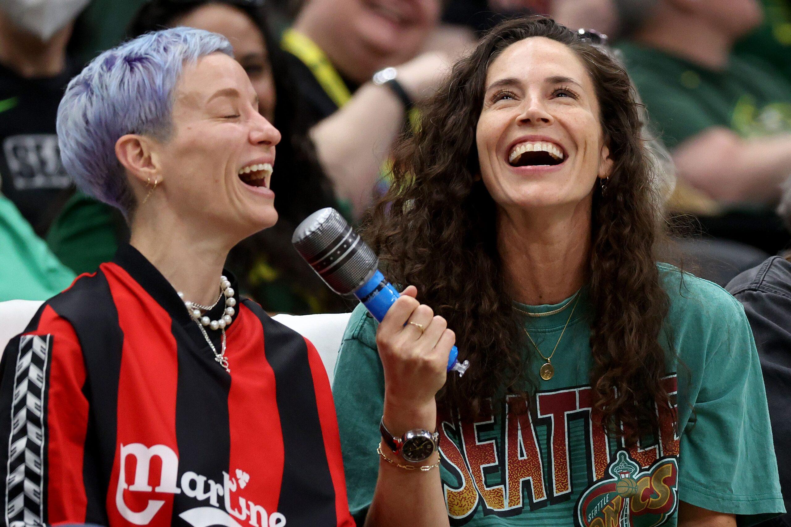 “I’m the best WAG ever,” Rapinoe says. “I love being a WAG. It’s badass. It’s great. I love being with Sue. I love supporting her. I love seeing her do her stuff. I always loved going to her games. I just love being able to be on the other side of it and do something different.”