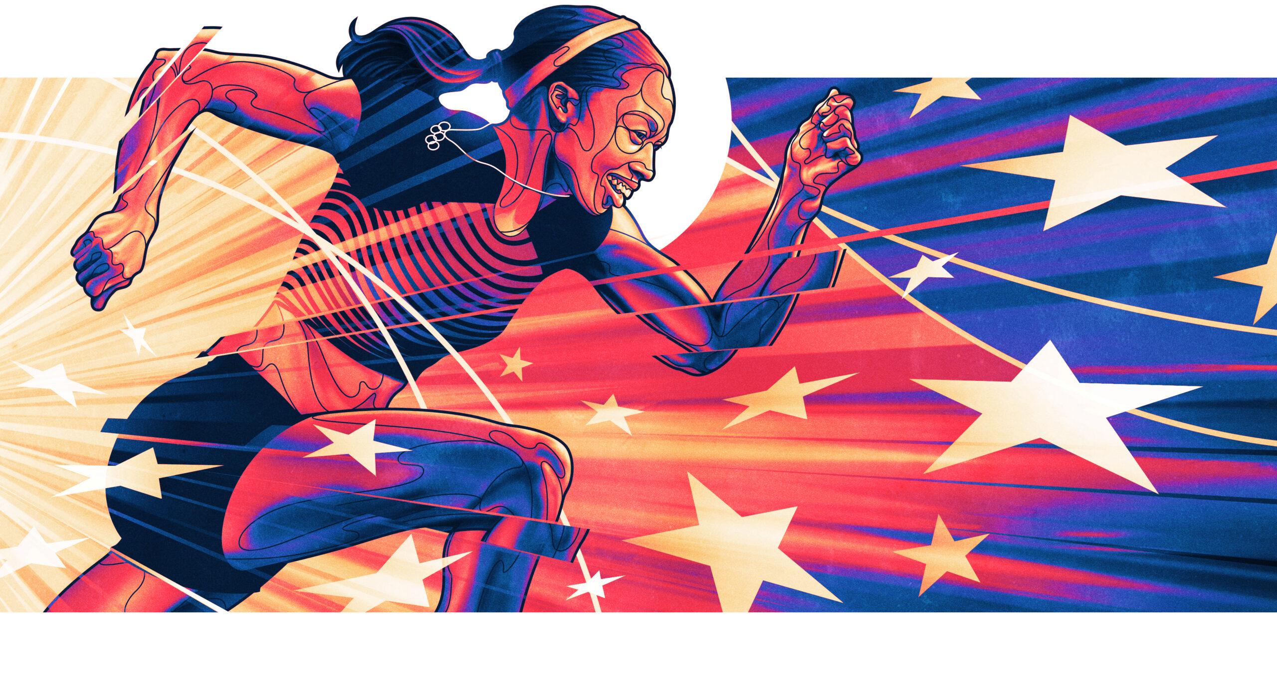 The reason she’s sprawled out in the back corner of a 20,000-student community college’s athletic facility is a bit of a riddle. She’s back for one more run because she wants to be. But also because she’s compelled to. “This season I’m running for women,” is how she explained it in an April retirement statement. Two months later, she announced an initiative with her sponsor Athleta and the nonprofit group &Mother to provide free childcare to athletes, staff, and coaches for the first time in the history of the U.S. Championships. In an industry where childcare still dictates who participates on the brightest stages, the move was activism at its most impactful and shrewd.