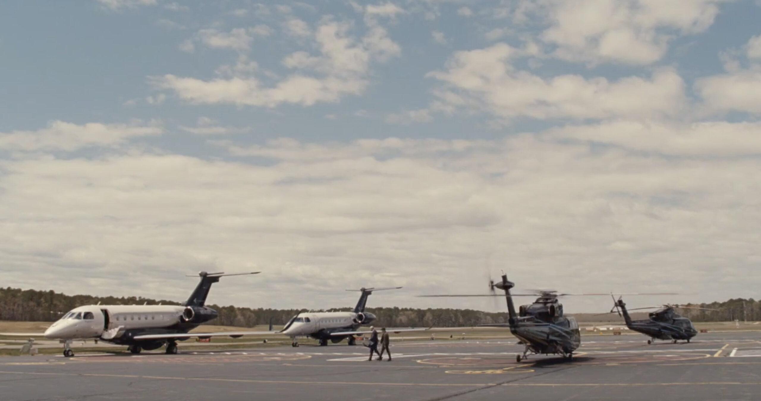 Since Logan and Kendall aren’t on the best, uh, terms at the moment, the fact that they agreed to a meeting where they’re in the same room feels like an accomplishment in and of itself. But before they can talk with Josh, they have to get to his island. That means Succession gets to return to one of its favorite 1-percenter staples: private air travel. But Kendall and Logan’s respective egos are so big that sharing a private helicopter and plane just won’t cut it. No, they’ll fly separately, right next to one another, resulting in this absurd image of excess: