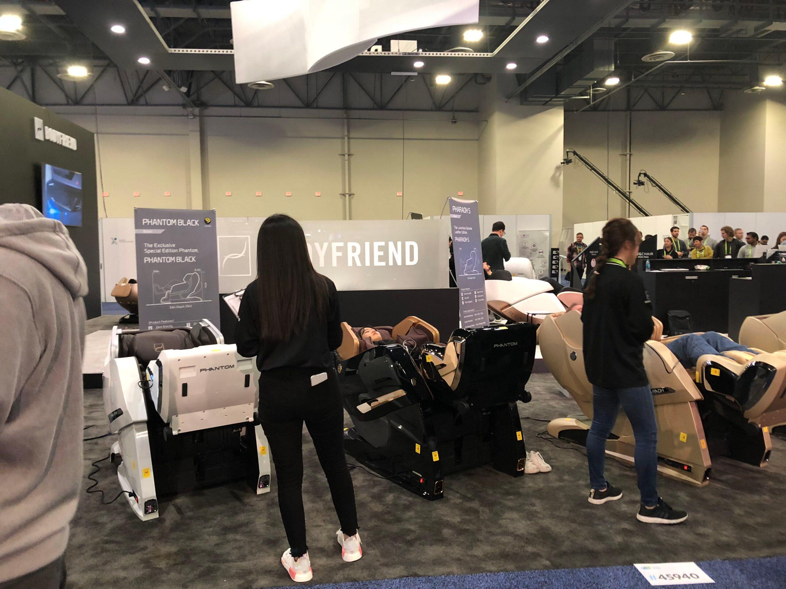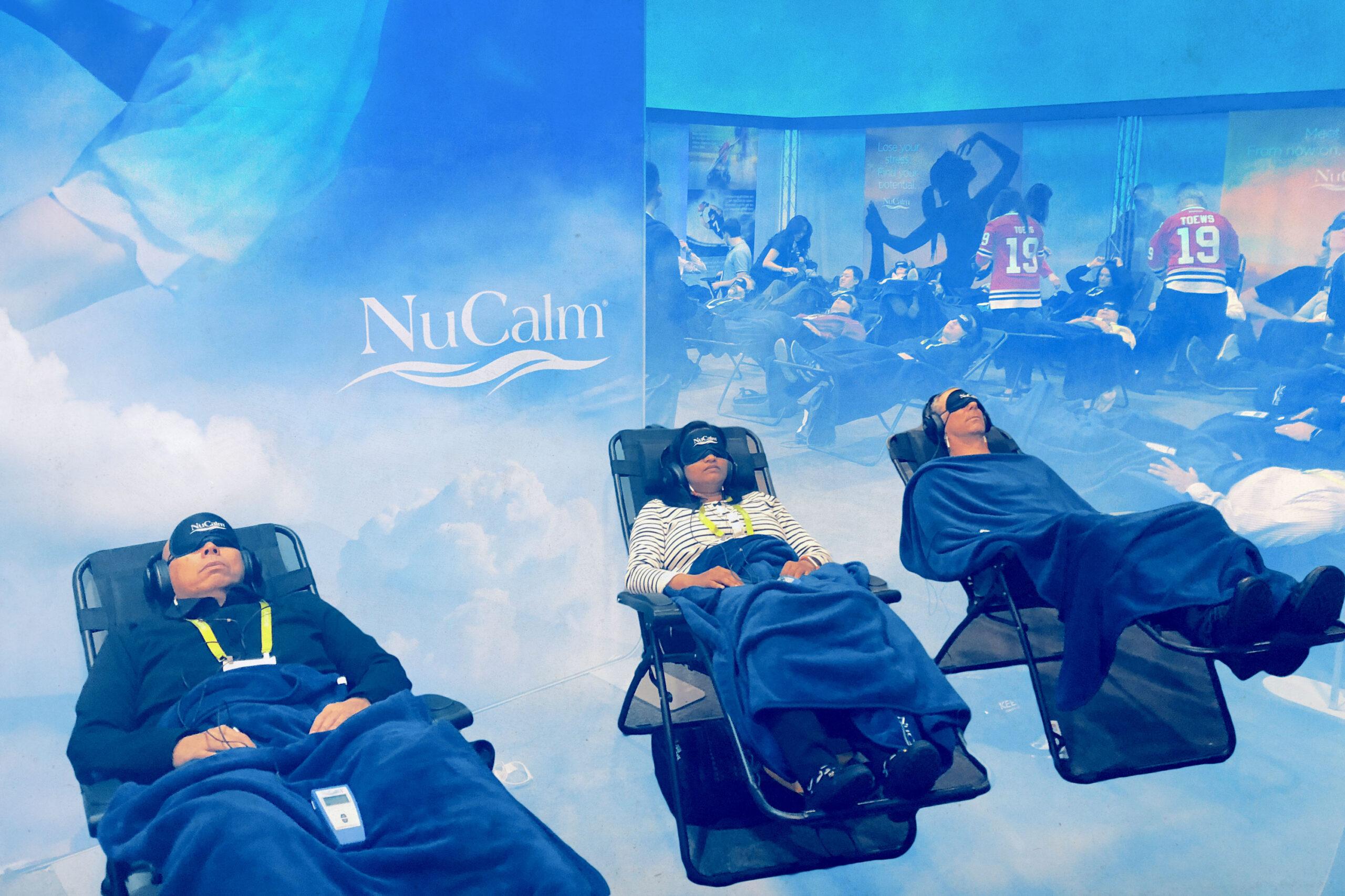 In all corners of the giant convention exhibition, there are downtrodden CES attendees resting their weary bodies atop mattresses, across pillow tops, and ensconced in massage chairs. Their faces momentarily blank, if not relaxed. Amid the cacophony of the expo, the high-tech furniture offers a temporary respite from the eager exhibitioners trying to sell you on their products. The best selling point is that, even if temporarily, this chair or mattress or pillow offers an escape from the chaos. And after the nap, the hard sell goes down much easier.