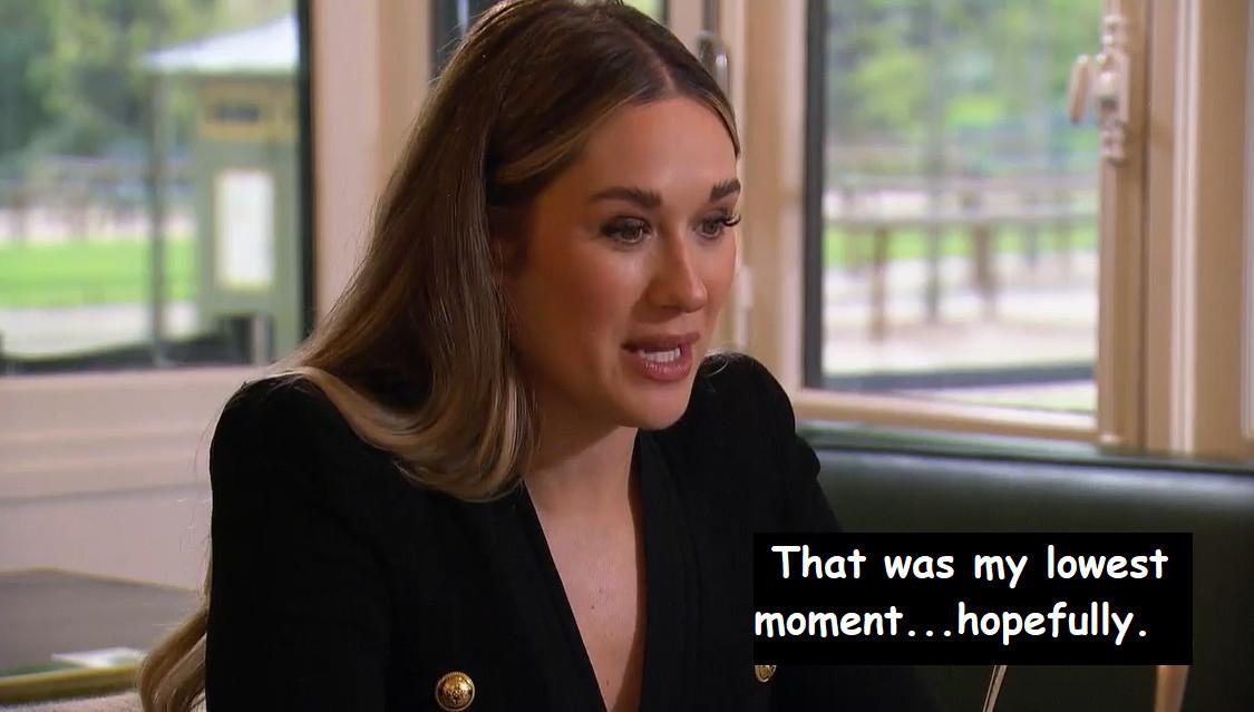 Rachel—continuing a long line of Bachelorettes who’ve made the reasonable assumption that a lack of effort shown is equal to the amount of fucks given—absolutely melts down, just as I assume The Bachelorette producers knew she would. So, after staring off the side of this comically sized ship while dressed exactly like Regina George about to cause a high school riot …