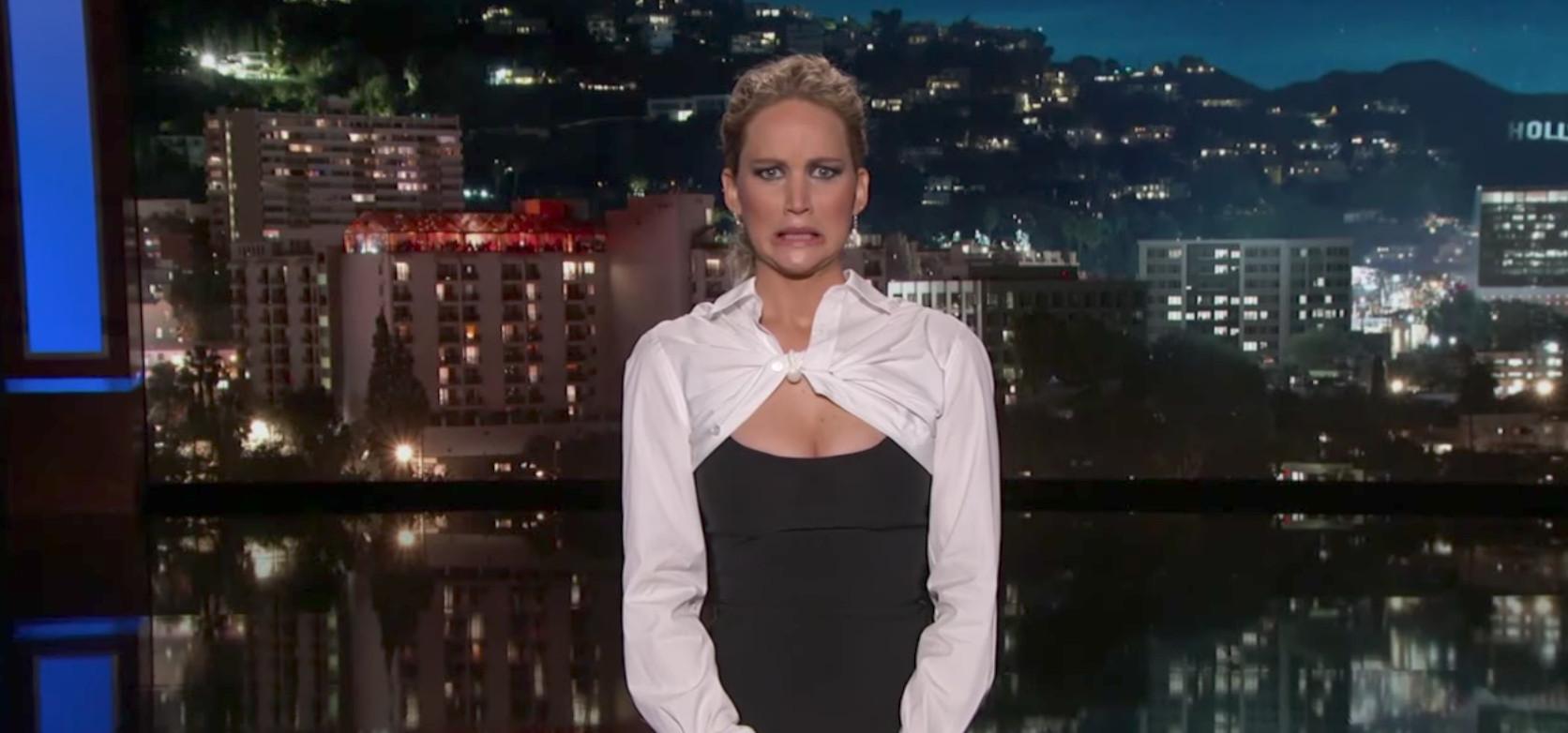 Jimmy Kimmel has been absent from his show this week due to a delay of his son’s second heart surgery, and in the meantime, a variety of celebrity guest hosts have taken over. Lawrence took the reins on Thursday night’s Jimmy Kimmel Live! following appearances earlier in the week by Shaquille O’Neal, Dave Grohl, and Channing Tatum. Not only did she blow the previous hosts out of the water, but she gave Kimmel himself a run for his money.
