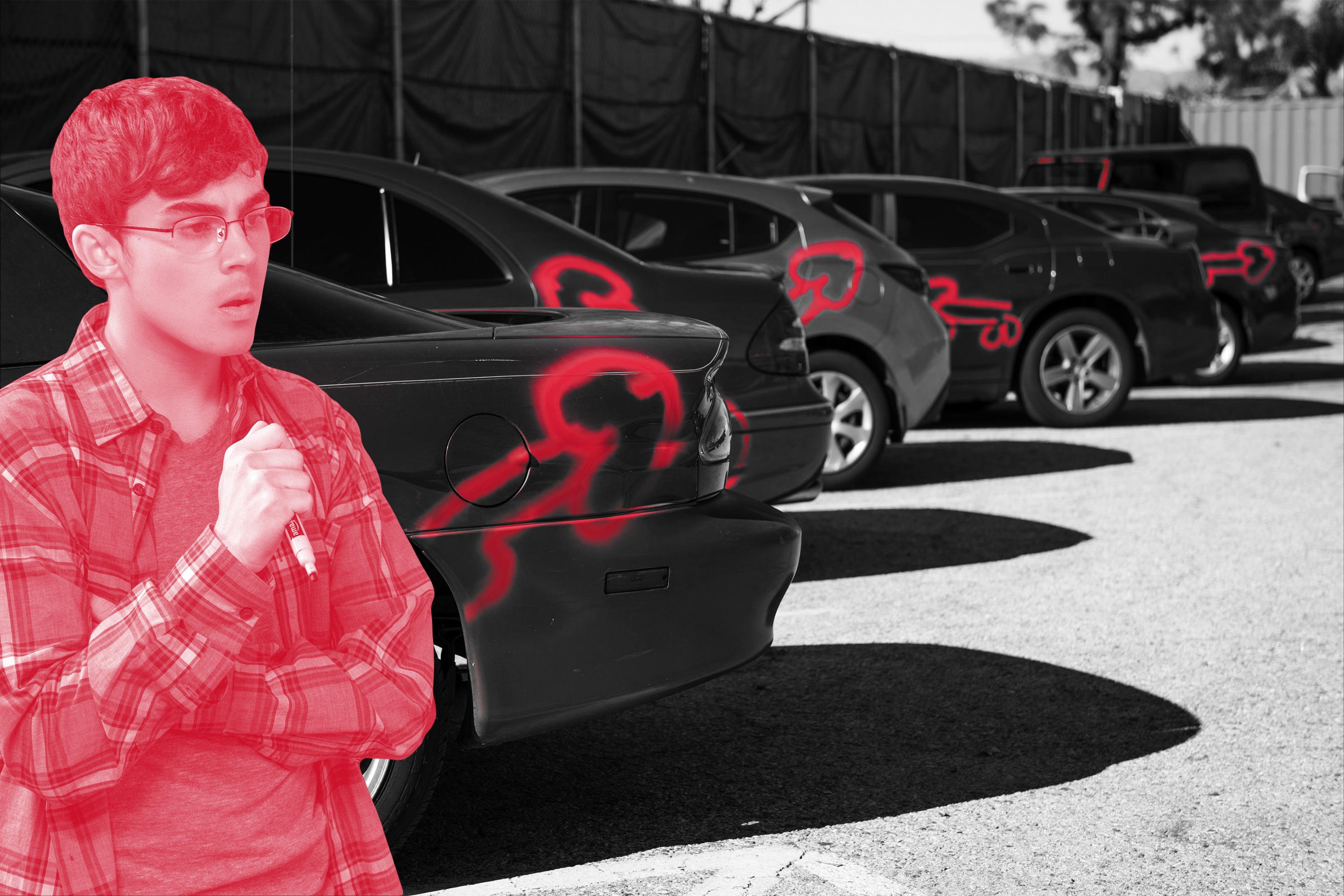 Less than five minutes into the first episode of American Vandal— Netflix’s new true-crime mockumentary series that was released on Friday— these words are spoken by a character named Mrs. Rothacker. I don’t want to give too much away, because as I’ll make clear below, American Vandal is phenomenal and should be seen by everyone. Here’s a spoiler-free synopsis, though: Someone has spray-painted dicks on 27 different cars (including Mrs. Rothacker’s) in a high school faculty parking lot. Everyone believes that the culprit is Dylan Maxwell, a senior student who has a reputation as both a dipshit prankster and a serial dick drawer. Most of the evidence from the incident leads back to him, as Dylan has a strong motive, a weak alibi, and the means to pull the caper off. Taking all of this into account, the school board takes little time in expelling him, a decision that nobody in the community seems to find controversial in the slightest. Nobody, that is, except for one student with a camera and a thirst for the truth, who dares to ask the question that no one else would: Are we sure Dylan did the dicks?
