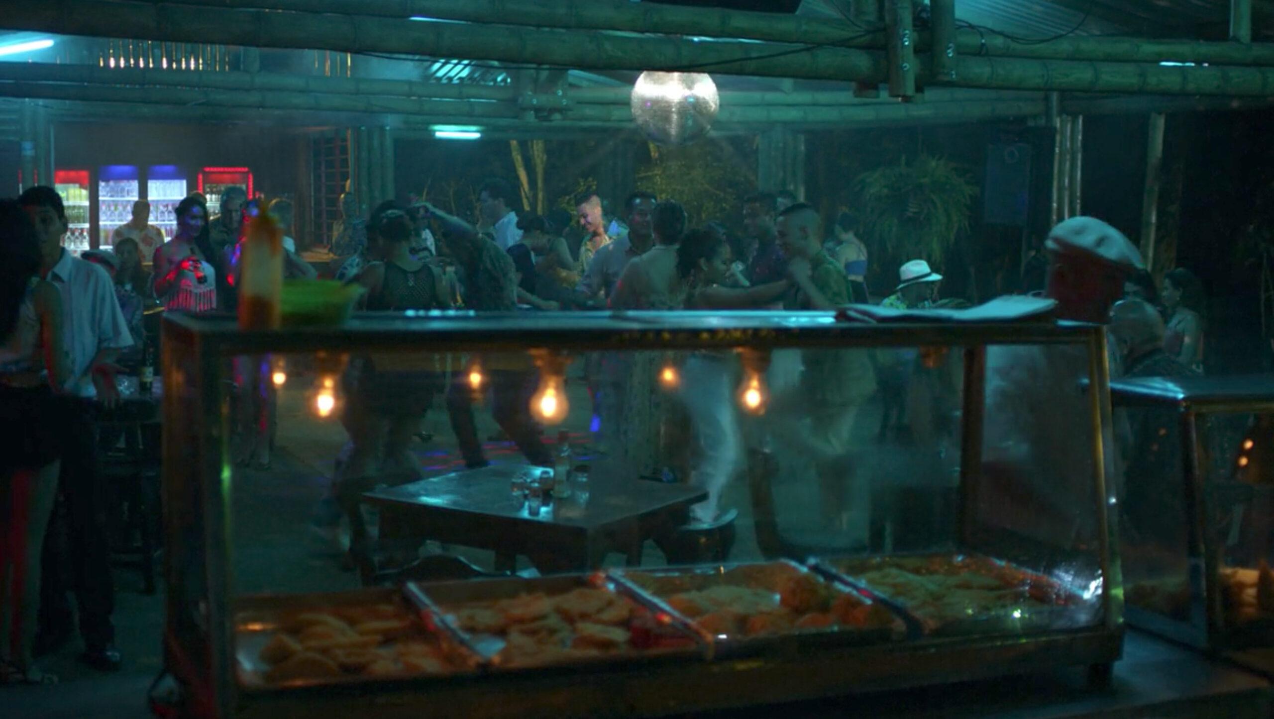 The food, the soda machines, the lovers on the dance floor—these things are tactile. You are there. There’s a river running off to the side, and the music is played through a PA system. During the sequence, the camera assumes the perspective of curious bystanders in the bar—stealing looks at people reacting to the brazen display of affection wherever it can.