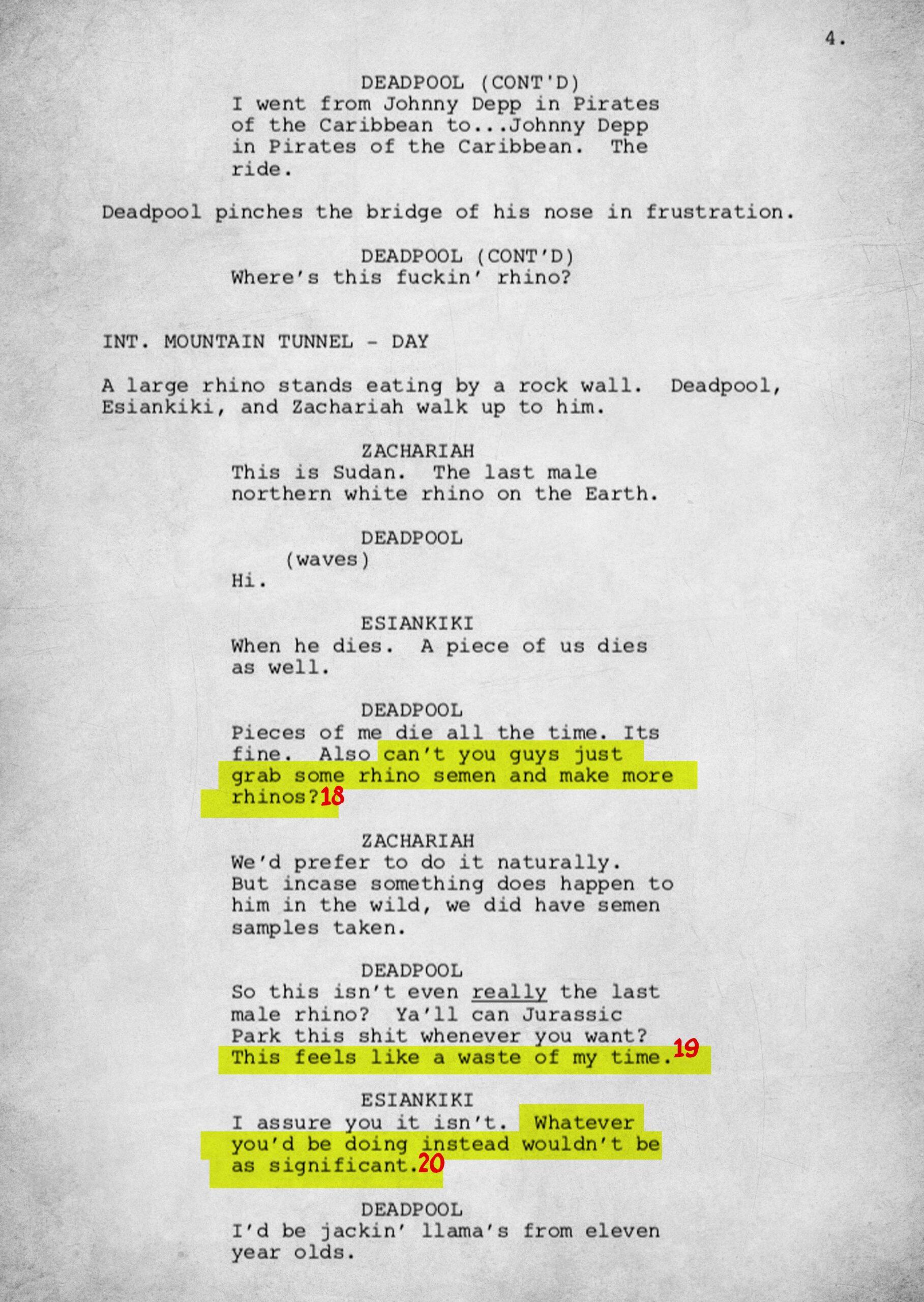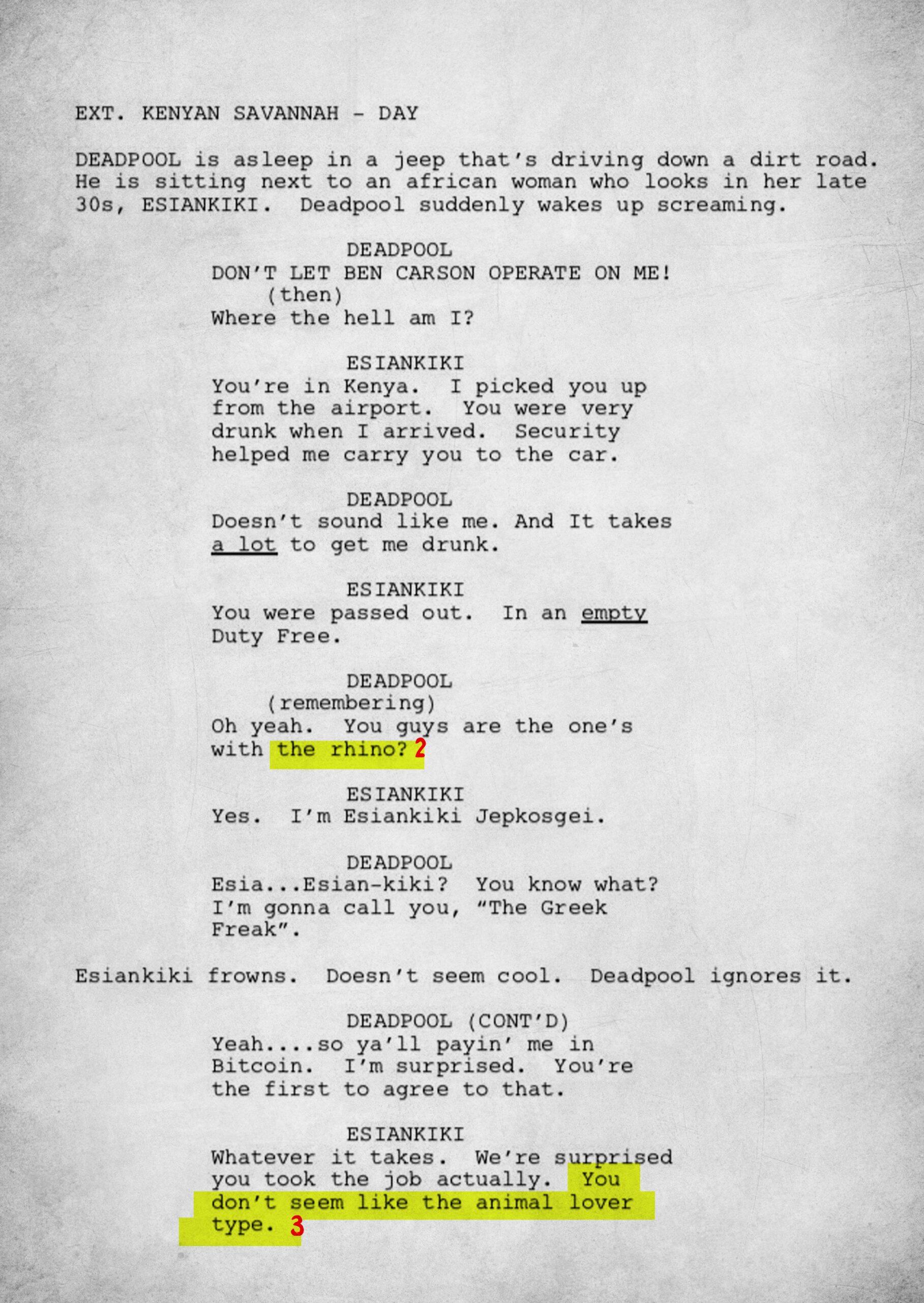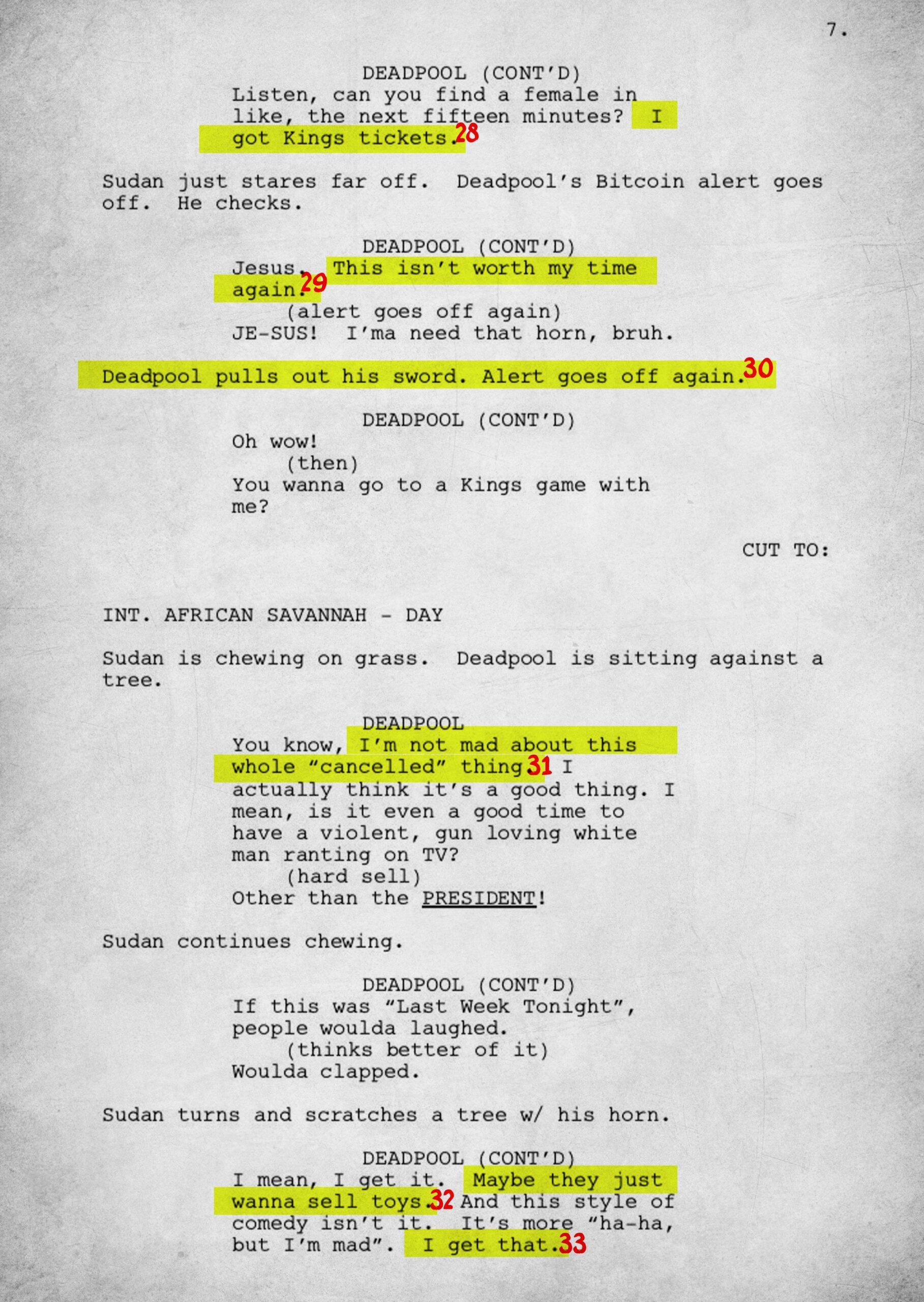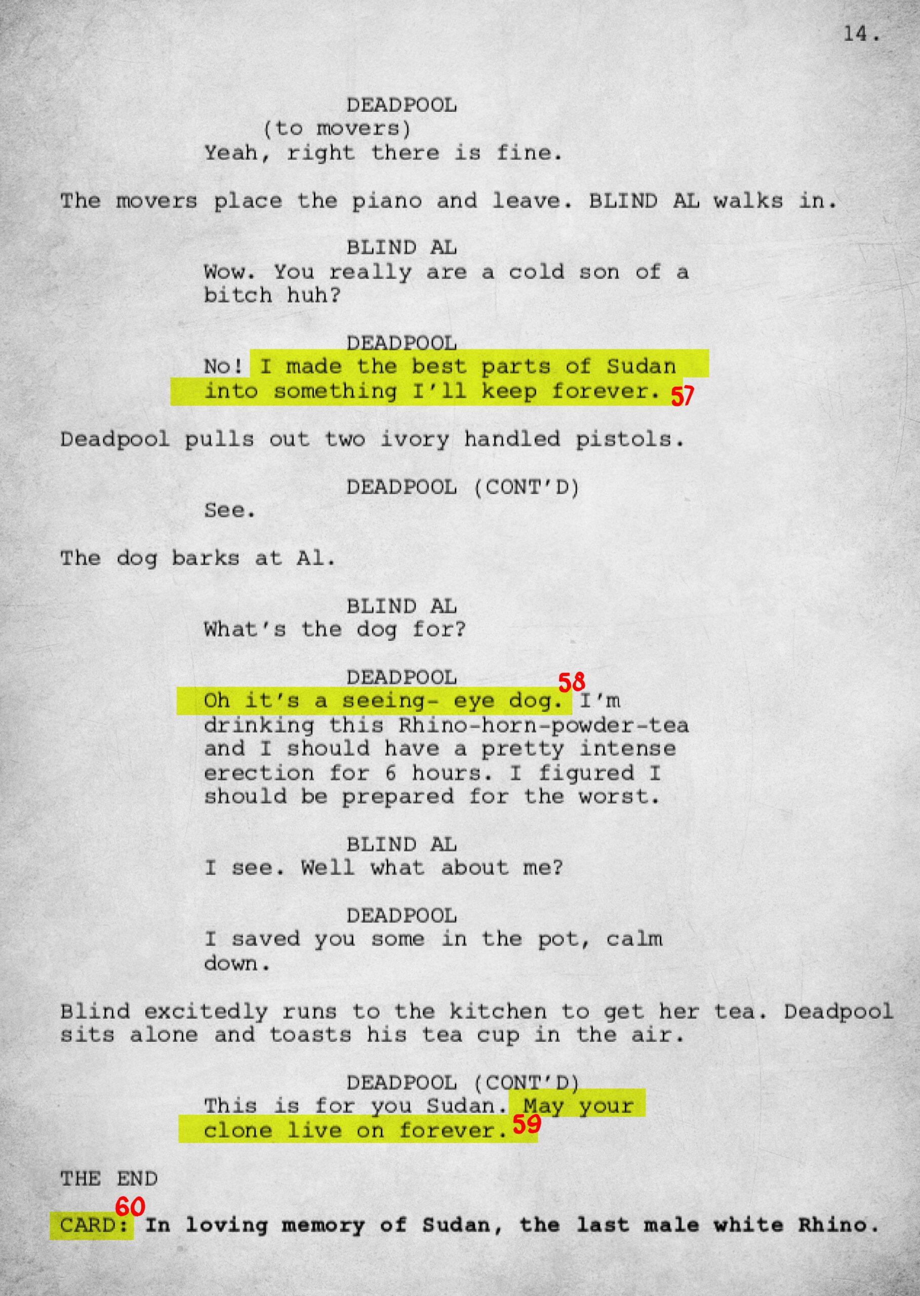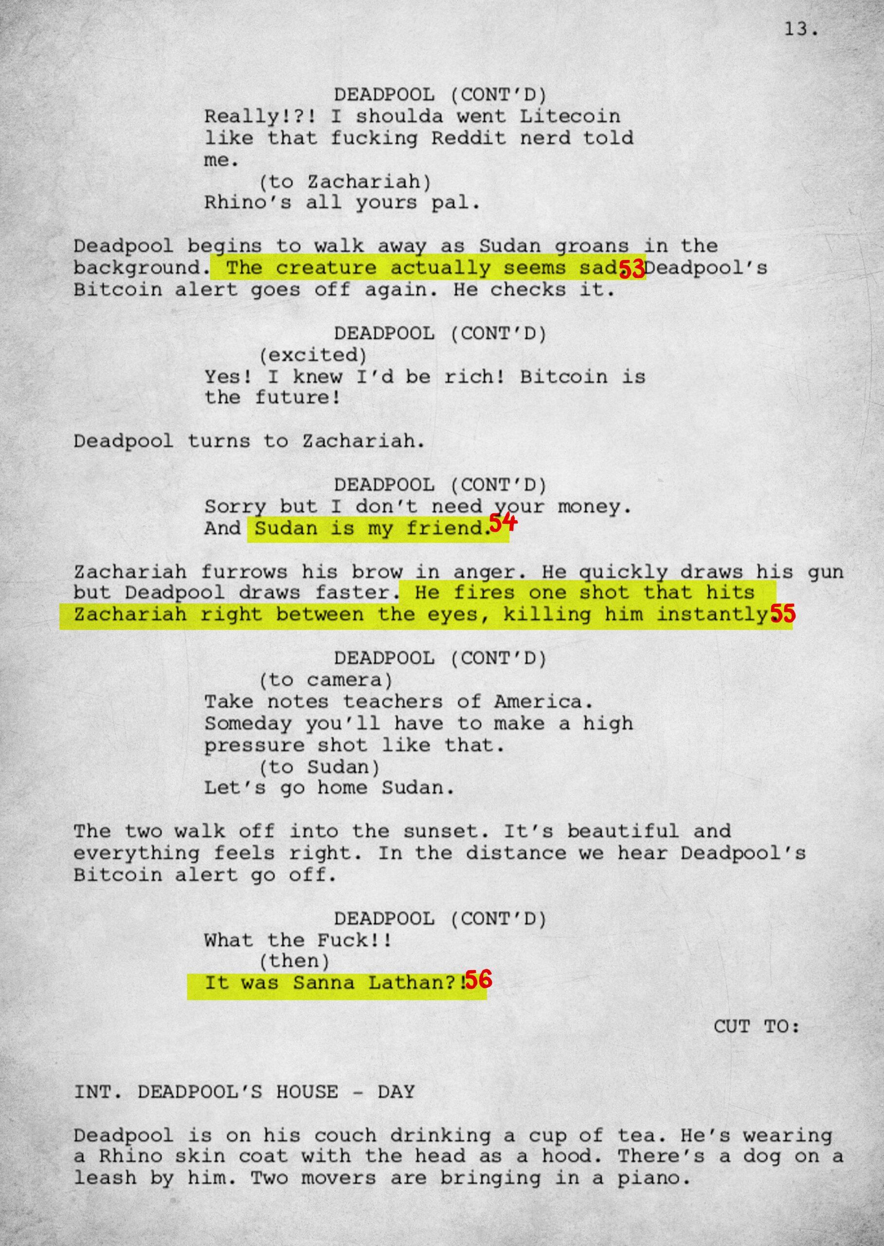 The 15-page script is rife with meta and pop culture references. To fully understand the work, we have annotated each page.