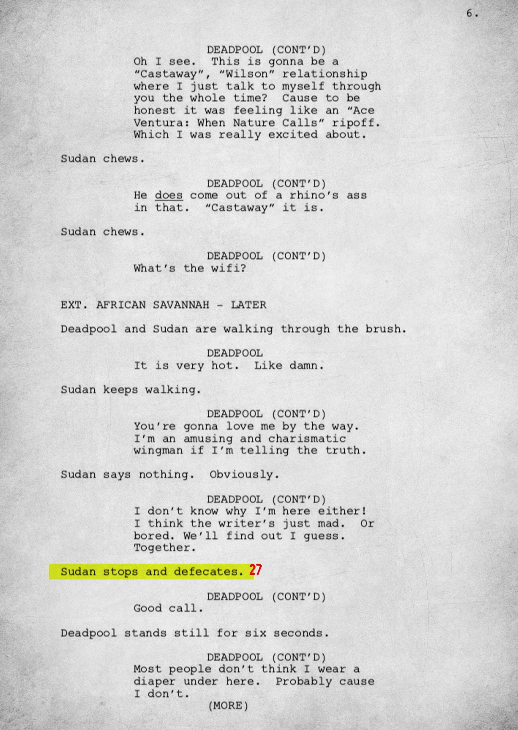 27. “Sudan stops and defecates”: The development process for the Deadpool animated series was not going well.
